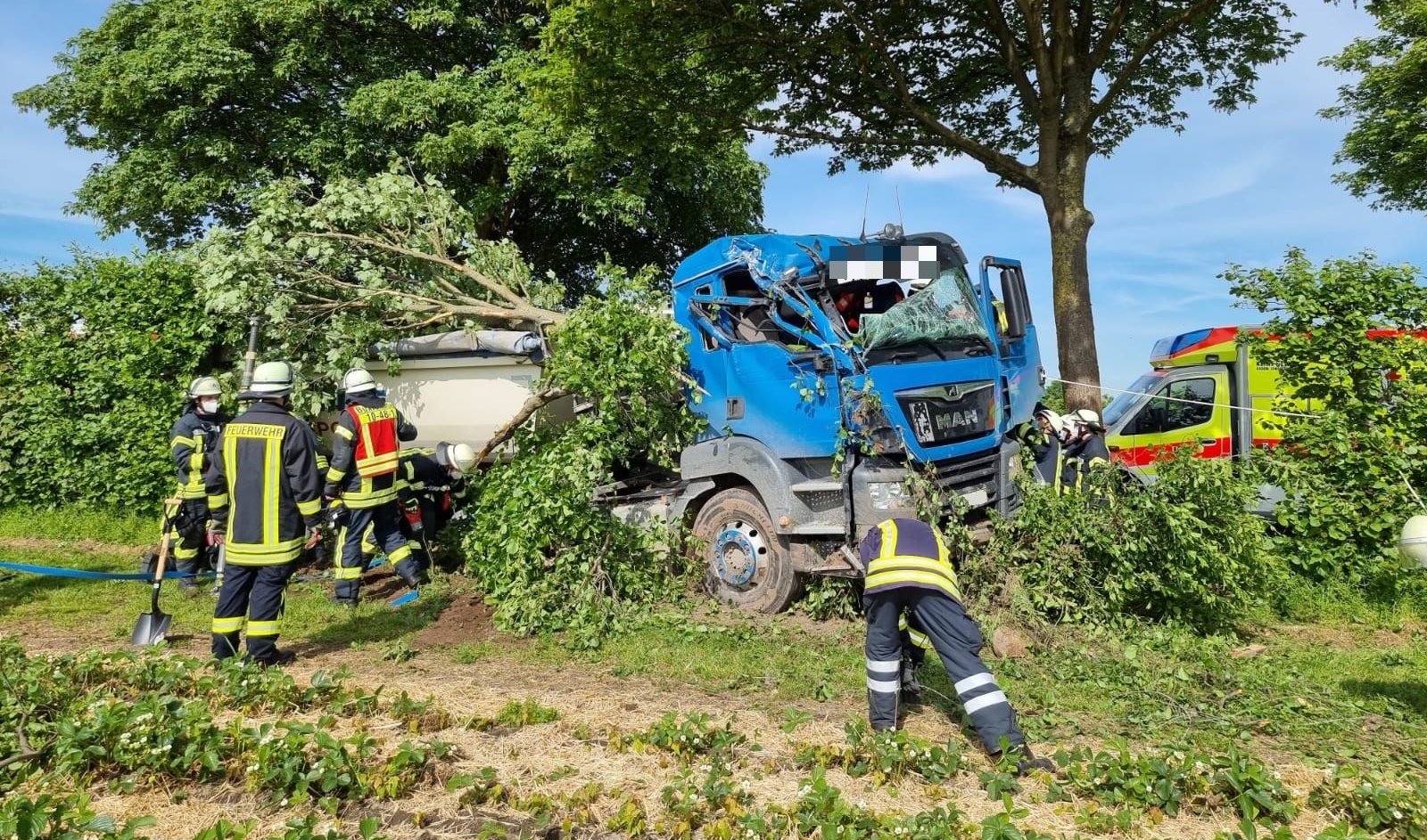 Schwerer Verkehrsunfall in Grundoldendorf - LKW kommt von der Straße ab