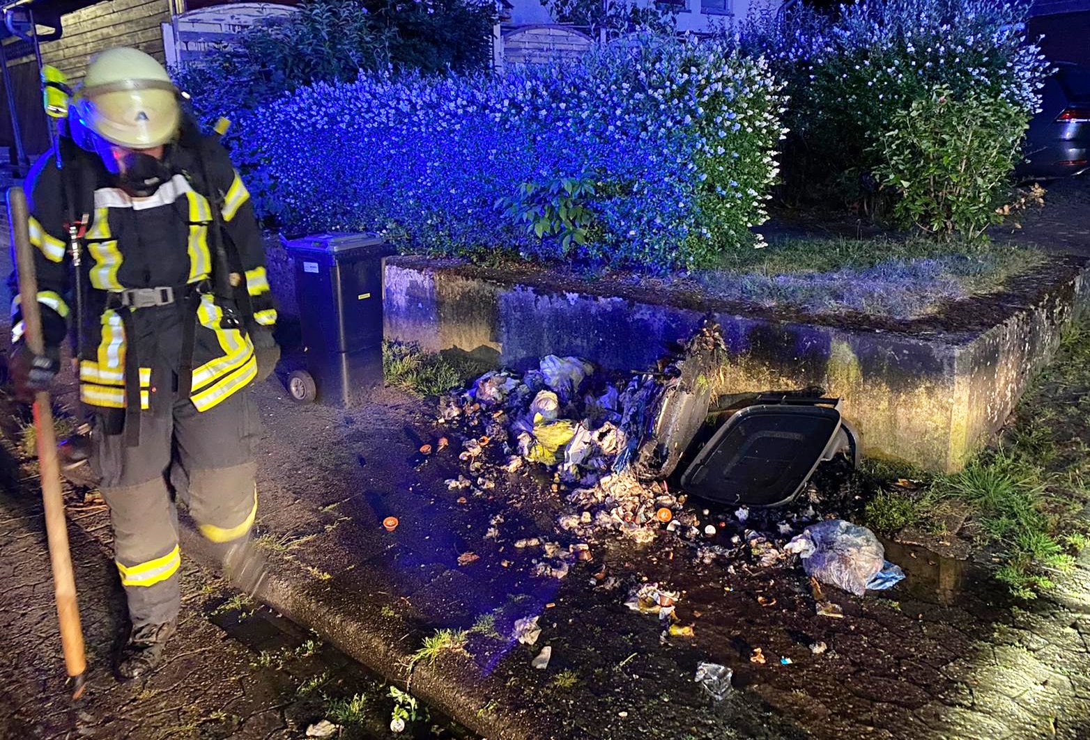 Dort handelte es sich um eine brennende Restmülltonne, die wiederum durch Nachbarn mit Hilfe eines Gartenschlauchs unter Kontrolle gebracht worden war. Durch die Einsatzkräfte wurden die Rest auseinander gezogen und mittels Schnellangriffsschlauch abgelöscht.