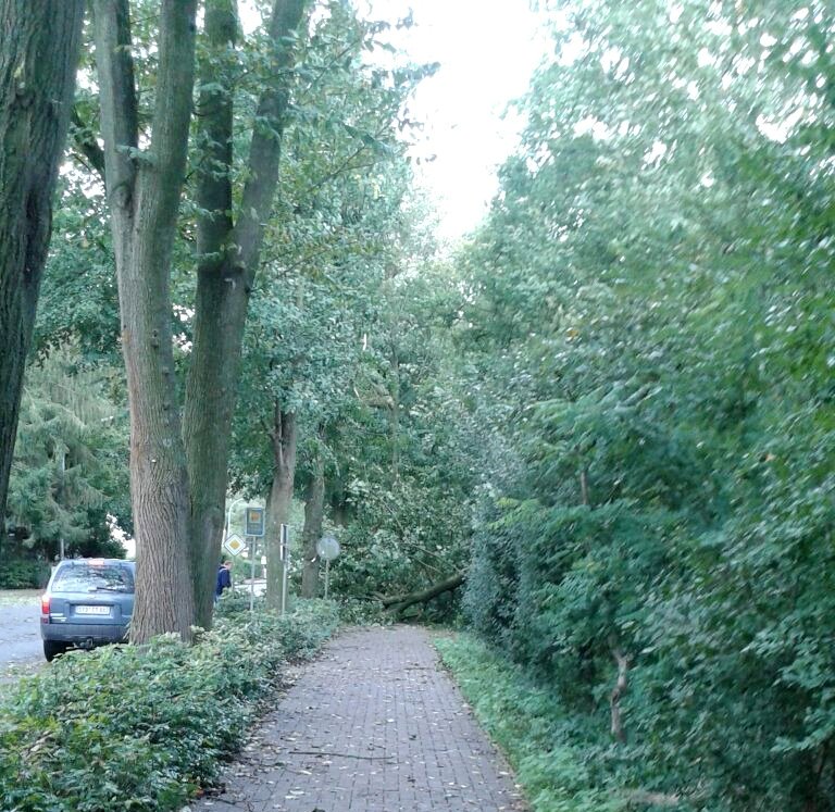 In der Verlängerung der Feldstraße mussten die Hedendorfer Kräfte gegen 14:00 Uhr aktiv werden. Auch dort war ein Baum auf die Fahrbahn gestürzt und behinderte die Durchfahrt.