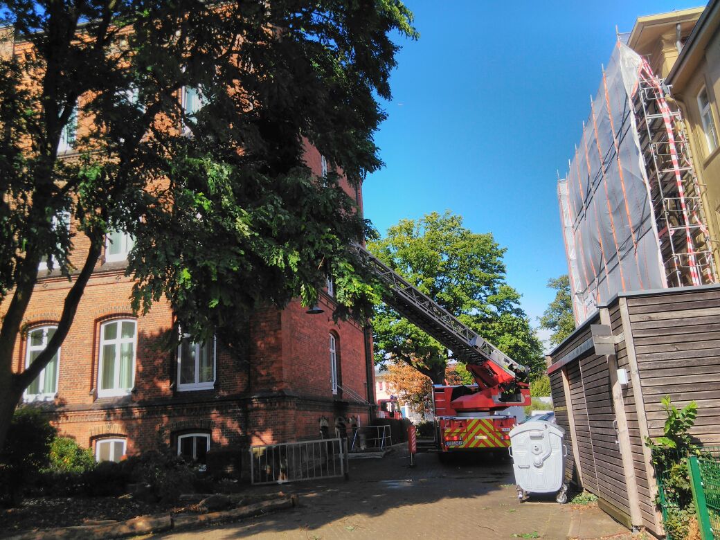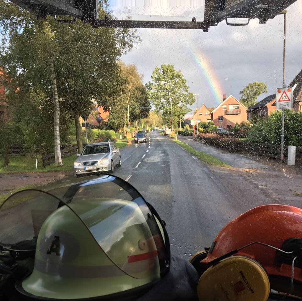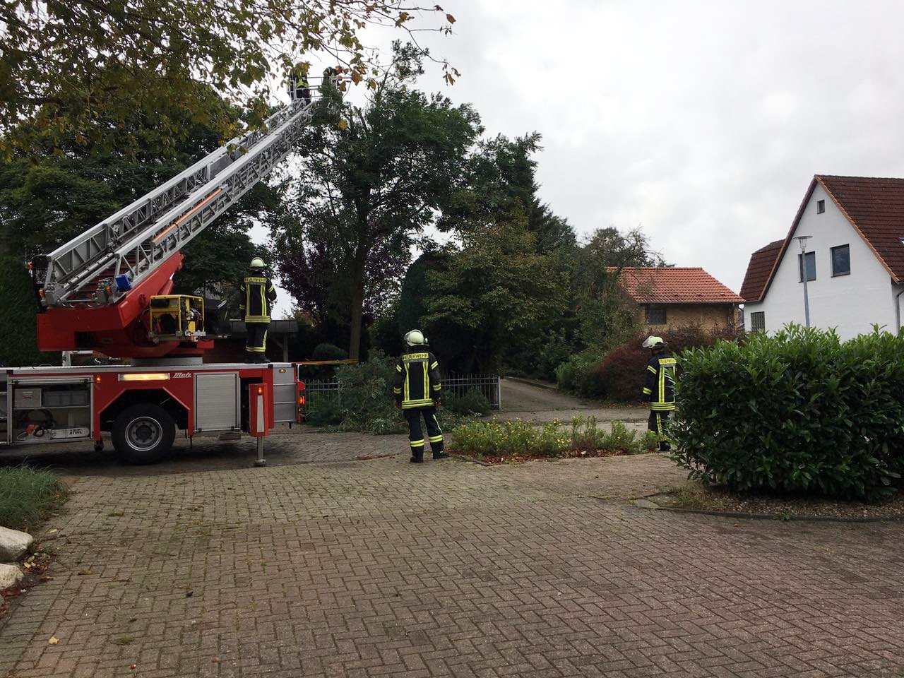 Kurze Zeit später traf es dann auch die Wehren aus Ovelgönne / Ketzendorf und Immenbeck, die in der Altklosterbergstraße tätig werden mussten. Dort drohte ein Ast aus einer Baumkrone auf die Fahrbahn zu stürzen. Mit Unterstützung der Drehleiter wurde die Gefahr beseitigt.