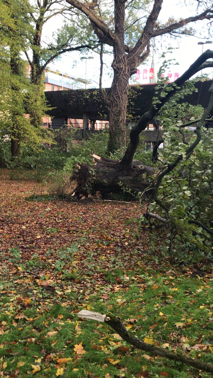 Auch einen der bekanntesten Bäume Buxtehudes erwischte es am Sonntagmorgen. Die schon gestützte Linde zwischen dem Parkhaus und der DRK Unterkunft an der Hansestraße brach oberhalb der Wurzel ab und musste von den Einsatzkräften vom Zug I zersägt werden.