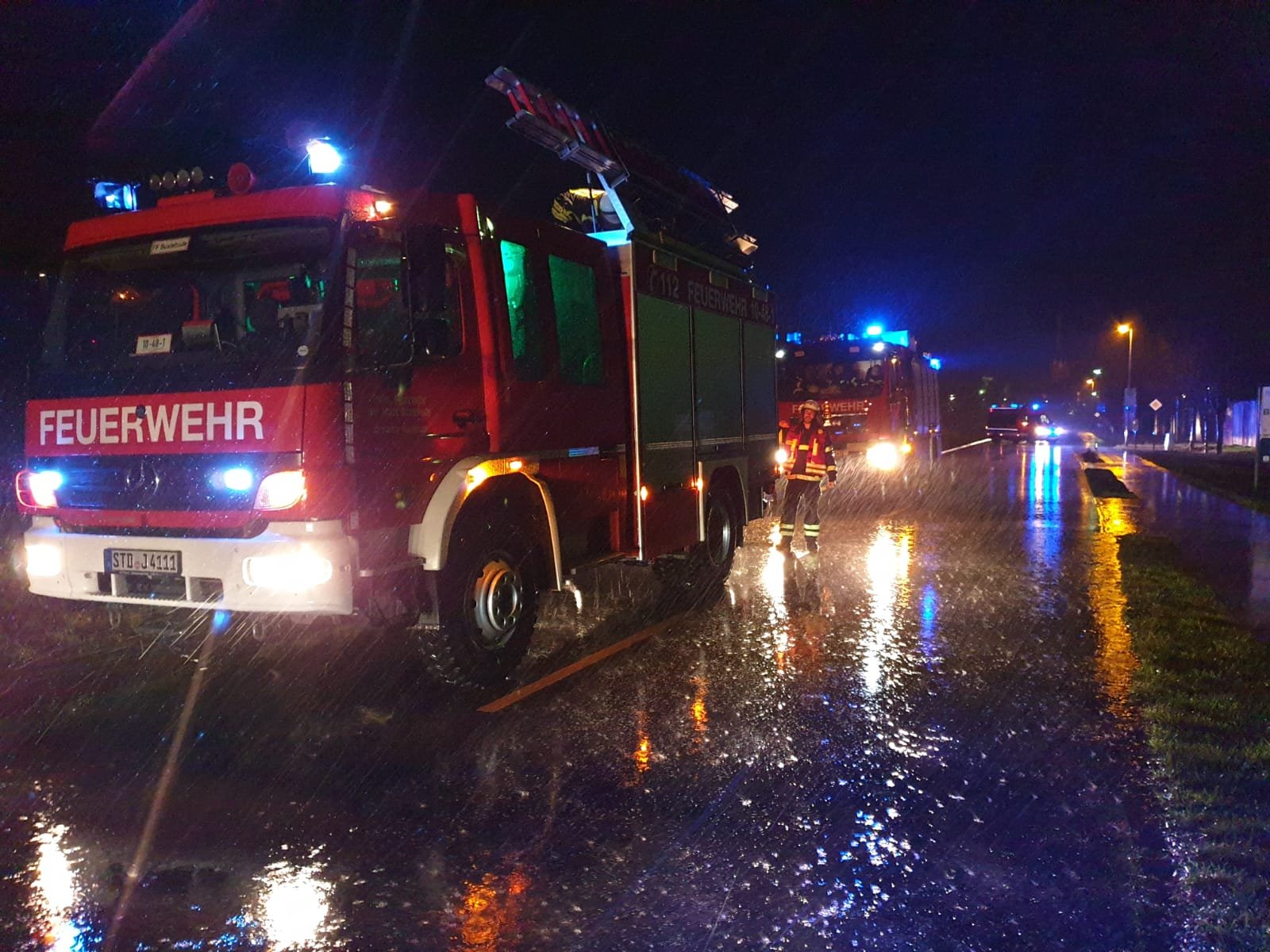 Mitten drin ereignete sich dann am frühen Sonntagabend ein Verkehrsunfall auf der Stader Straße in Höhe der Georgstraße. Der Zug II übernahm die Erstversorgung und die erforderlichen Absicherungsmaßnahmen.