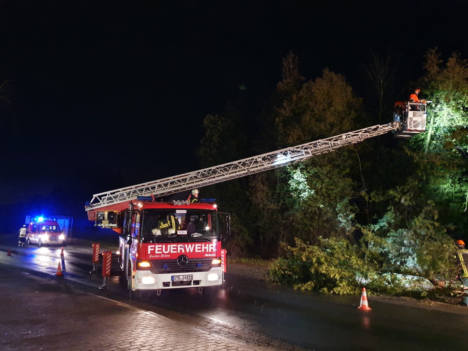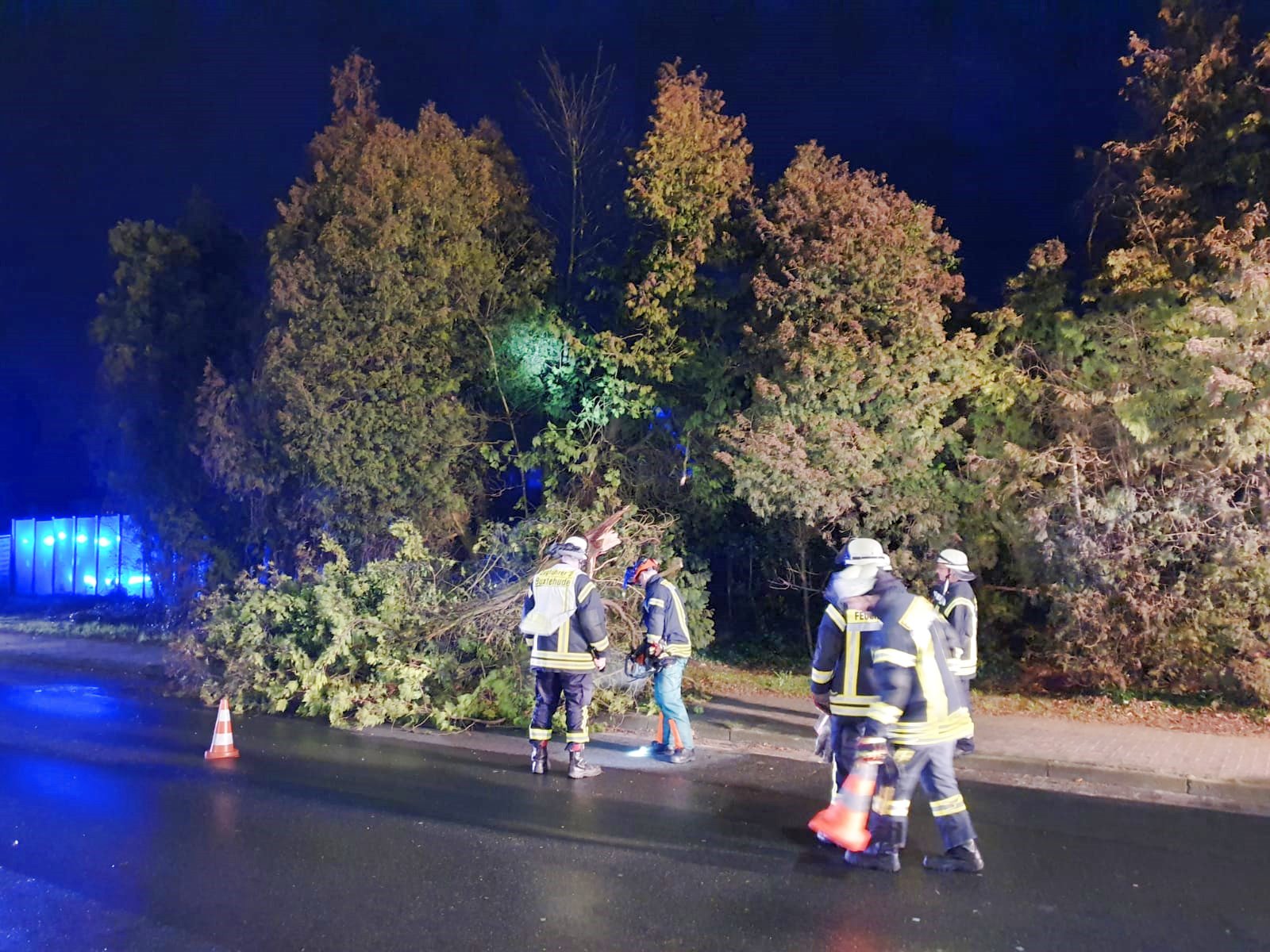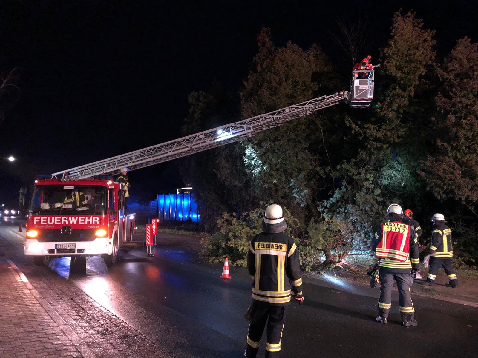 Weitere Baumeinsätze mussten im "Grünen Wald", in der Sachsenbergstraße, Apensener Straße, im Melkerstieg, auf der B73, im Schützenhofweg, in der Moorender Straße, Viverstraße, am Johann-von-Schulte Platz, in der Harburger Straße und Estebrügger Straße abgearbeitet werden. Dort waren die Ortsfeuerwehren Buxtehude (Zug I & II) und Neukloster im Einsatz.