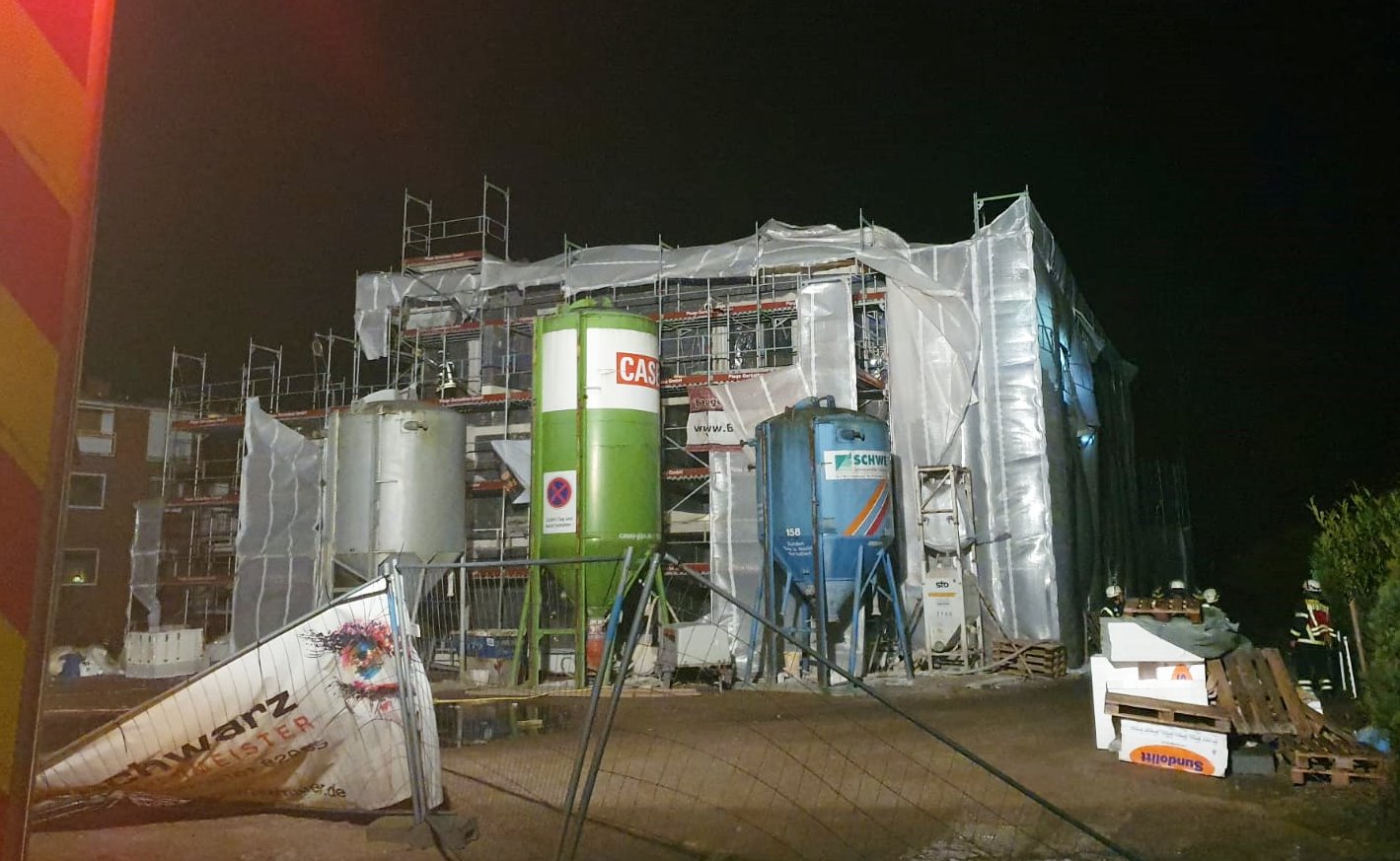In der Stader Straße und Rudolf-Diesel-Straße drohten je ein Banner wegzufliegen, im Melkerstieg ein Gerüst umzustürzen. Alles wurde vor Ort gesichert.