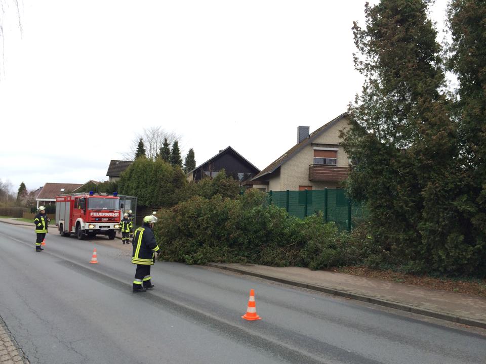 Der zunächst zur Überprüfung der Schadenslage alarmierte Ortsbrandmeister Buxtehude entschied nach Sichtung der Lage, dass zwei betroffene Bäume am Straßenrand gefällt werden müssten und forderte somit den Zug II an.