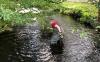 Als der Feuerwehrmann in Wathose auf die Ente zu schritt, konnte diese sich vor Schreck selbst befreien und flog davon.
