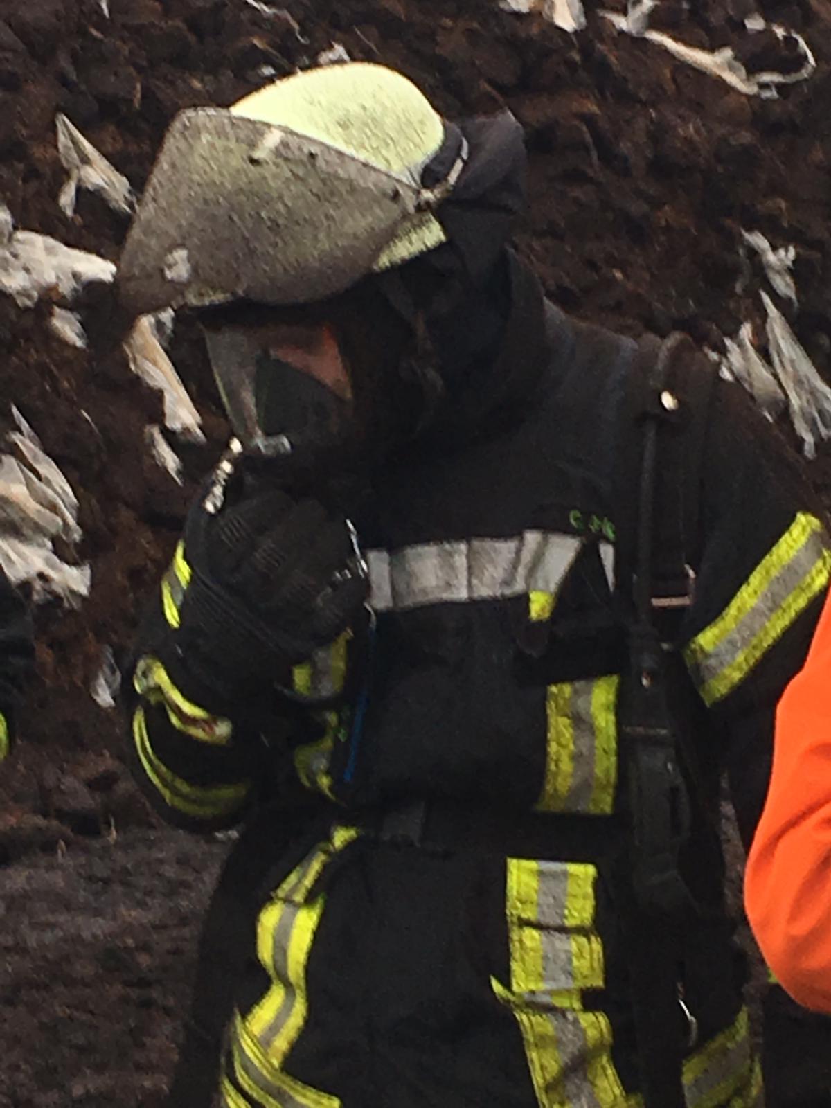 Am Ende bedeckten die Einsatzkräfte die gesamte Brandstelle noch einmal mit Löschschaum, ehe sie gegen 16:30 Uhr abrücken konnten.