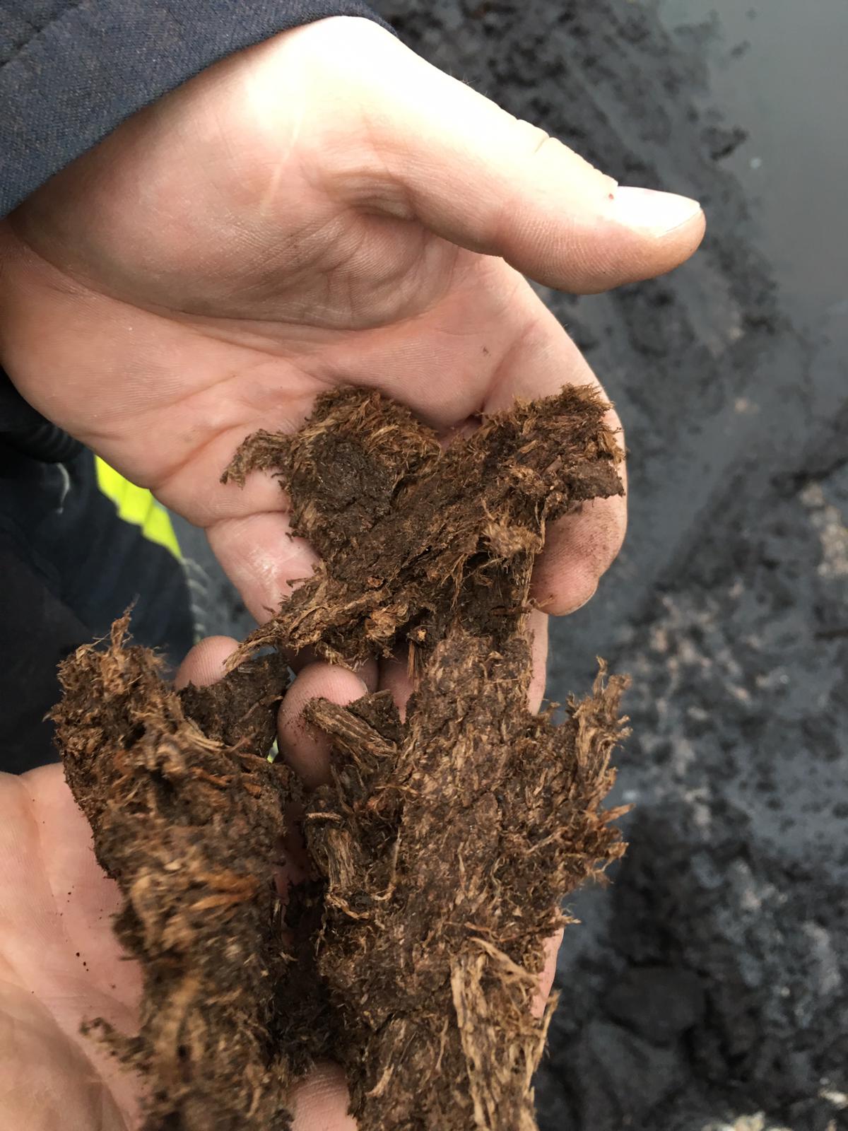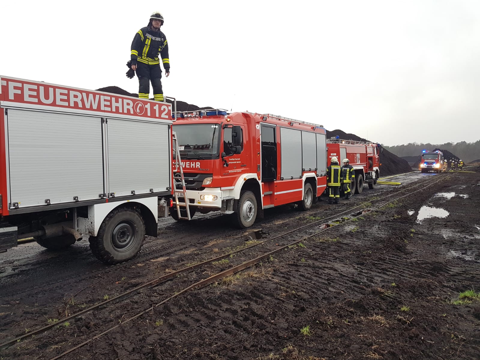 Zwischenzeitlich wurde das Löschverfahren ein wenig umgestellt. Nachdem der Bagger eine Schaufel voll Torf aus der Miete ausgehoben hatte, wurde die gleiche Menge Wasser in der Schaufel wieder zugeführt. Dies führte schließlich zum Ziel.