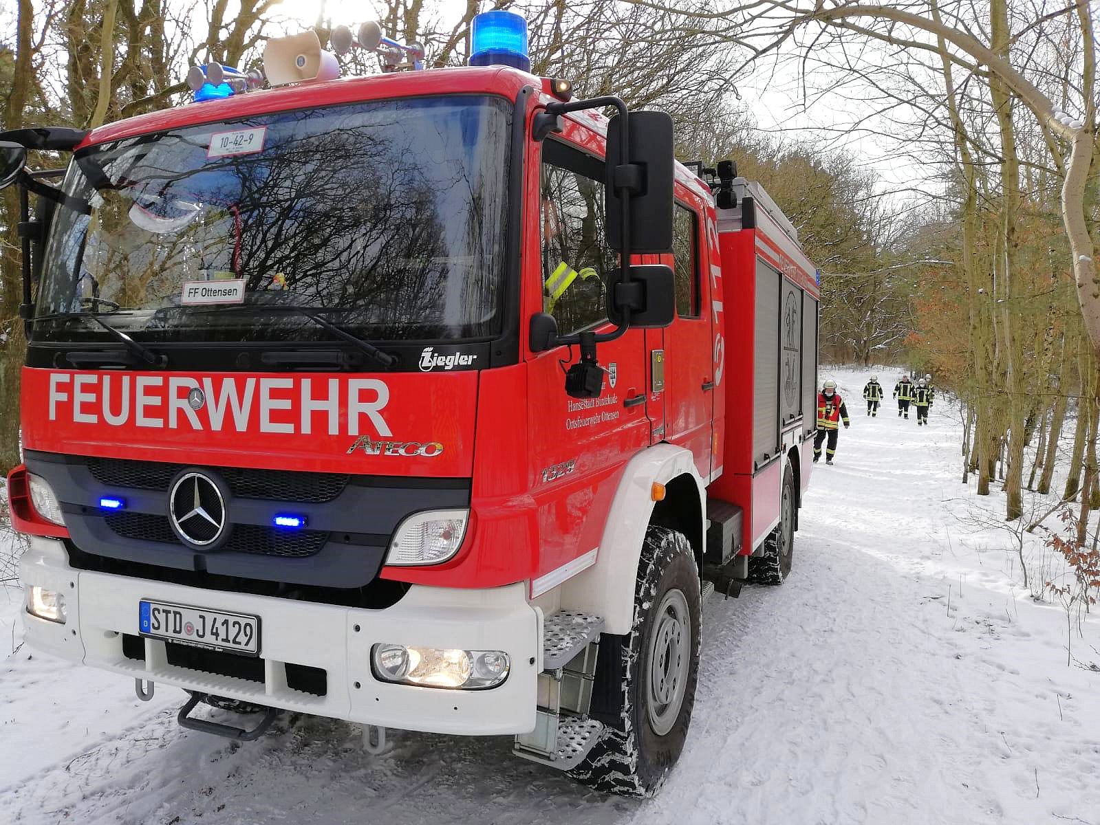 Eine ältere Dame zog sich am späten Mittwochmorgen während eines Spaziergangs im "Bundeswehrwald" bei einem Sturz Verletzungen zu. Die Kräfte vom daraufhin alarmierten Rettungsdienst forderten nach ihrem Eintreffen umgehend die Unterstützung durch die Ortsfeuerwehr Ottensen an, da die Wege im Wald stark vereist waren. Gemeinsam mit dem Rettungsdienst wurde die Frau zum Rettungswagen transportiert und zur weiteren Behandlung ins Elbe Klinikum gebracht.