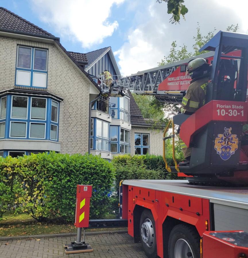 Vor Ort erkundeten die Feuerwehrkräfte die Lage und entschieden sich dann aufgrund der örtlichen Gegebenheiten dazu, die Drehleiter vom Zug I der Ortsfeuerwehr Buxtehude nachzufordern. Die Patientin war indes stabil, so dass die Rettung ohne zusätzliche Eile erfolgen konnte.