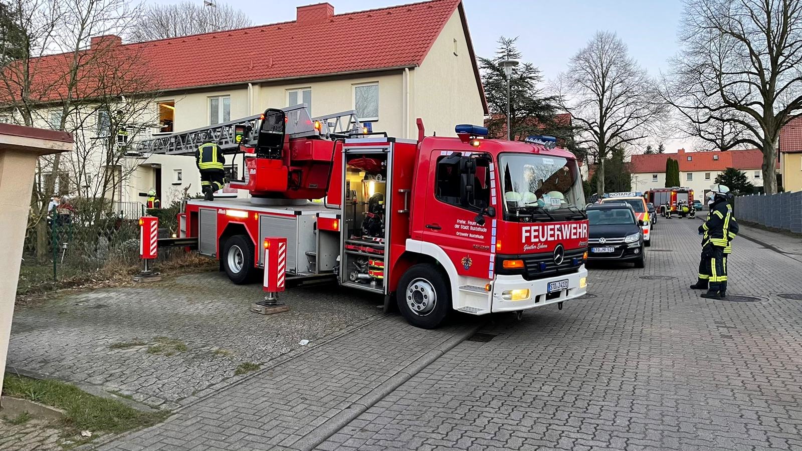 Probleme bereitete den Einsatzkräften der Aufbau der benötigten Drehleiter. Erst nachdem mehrere PKW von einem Parkstreifen entfernt worden waren, konnte für das Hubrettungsfahrzeugs ein sicherer Aufstellort geschaffen werden. Anschließend wurde die Patientin aus dem Obergeschoss ihres Reihenhauses gerettet und zum bereitstehenden Rettungswagen transportiert.