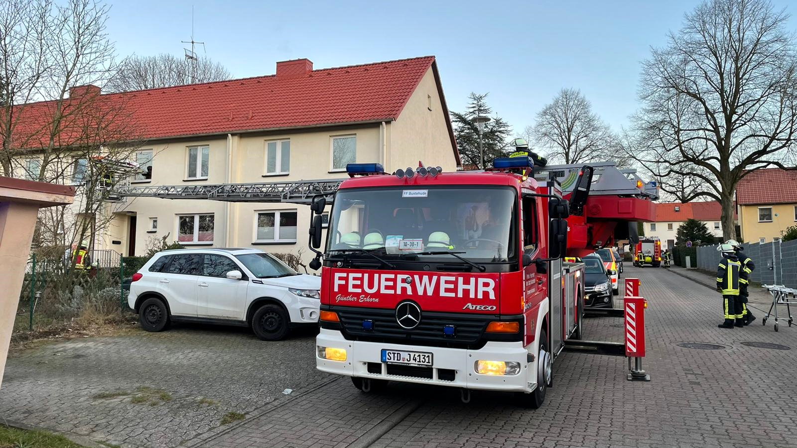 Beide Züge der Ortsfeuerwehr Buxtehude wurden am späten Sonntagnachmittag in den Schlangenweg zu einer Tragehilfe für den Rettungsdienst alarmiert.