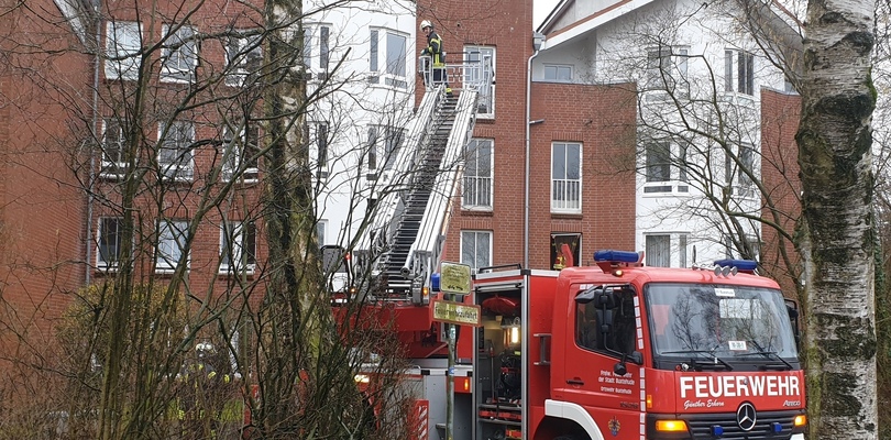 Am Sonntagmorgen wurde der Zug I der Ortsfeuerwehr Buxtehude vom Rettungsdienst zu einer Tragehilfe in die Weimarer Straße angefordert. Eine verletzte Person sollte über den Korb der Drehleiter aus dem Obergeschoss eines Mehrfamilienhauses transportiert werden. Für die Rettung durch das Treppenhaus war dieses zu schmal.