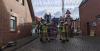 In einem Wohnhaus in der Ortsmitte war eine Person gestürzt und hatte sich dabei schwer verletzt. In einer Vakuummatratze gebettet, schied für den Rettungsdienst der Weg über die Treppe aus.