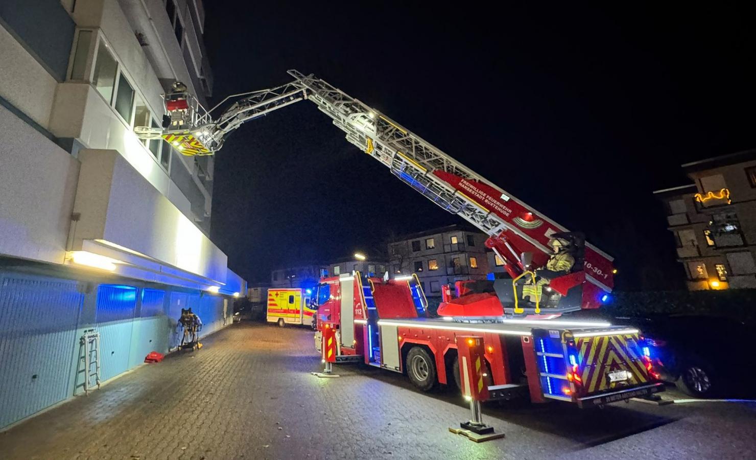 Vom Rettungsdienst angefordert, musste die Drehleiter vom Zug I der Ortsfeuerwehr Buxtehude am Mittwochabend in die Sagekuhle ausrücken. Dort war eine Patientin in einem Mehrfamilienhaus schwer gestürzt, so dass eine schonende Rettung erforderlich war.