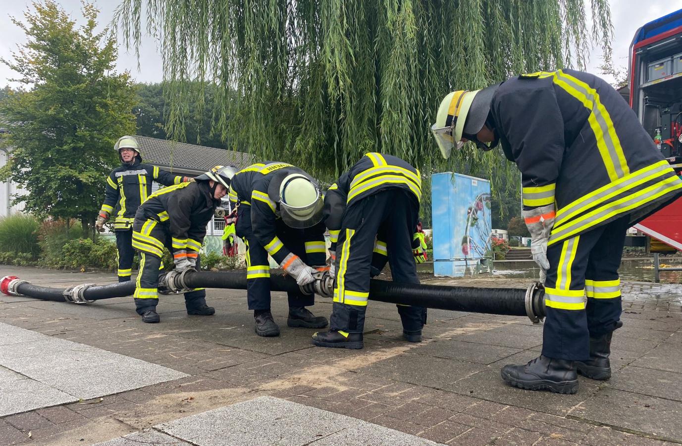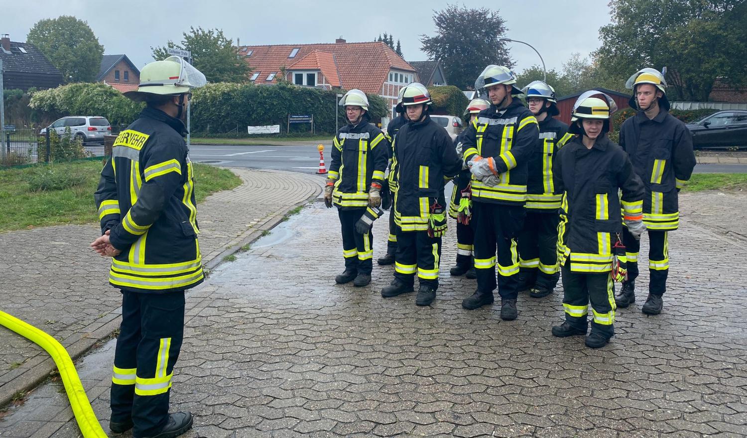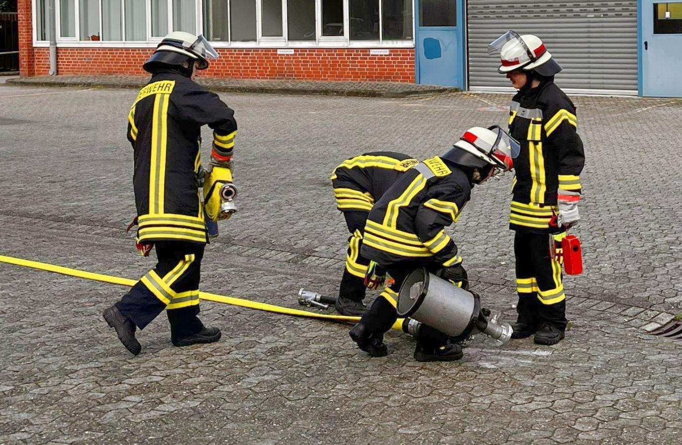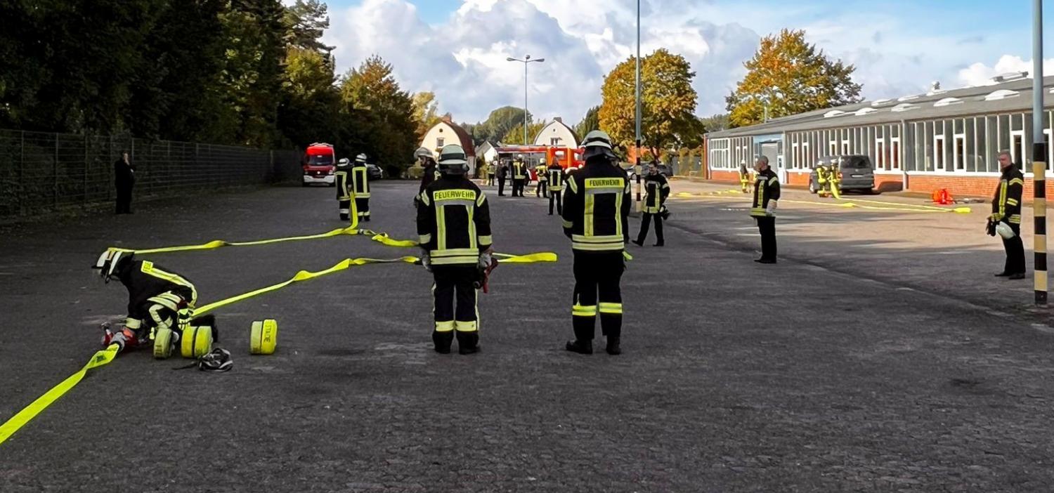 Die Hauptausbildungsstätte ist beim Zug II in Altkloster, wo der theoretische Unterricht hauptsächlich, sowie die schriftliche Prüfung abgelegt wird. Praxisübungen werden in erster Linie bei der Firma „Claudius Peters Projects GmbH“ durchgeführt, die jedes Jahr den Mitarbeiterparkplatz zur Verfügung stellt und somit eine große Unterstützung gibt. Die Ausbilder und Auszubildenden sind dafür sehr dankbar. Auch eine große Nassübung ist im Stundenplan zu finden, die auf dem Pfingstmarktplatz in Neukloster durchgeführt wird. Hier wird harte Arbeit an den Strahlrohren geleistet und auch der ein oder andere Kniff vermittelt. Ausbildungsleiter M. Stöppeler (Zug II), der diese Aufgabe schon einige Jahre ausführt, ist sehr zufrieden mit dem Lehrgang.