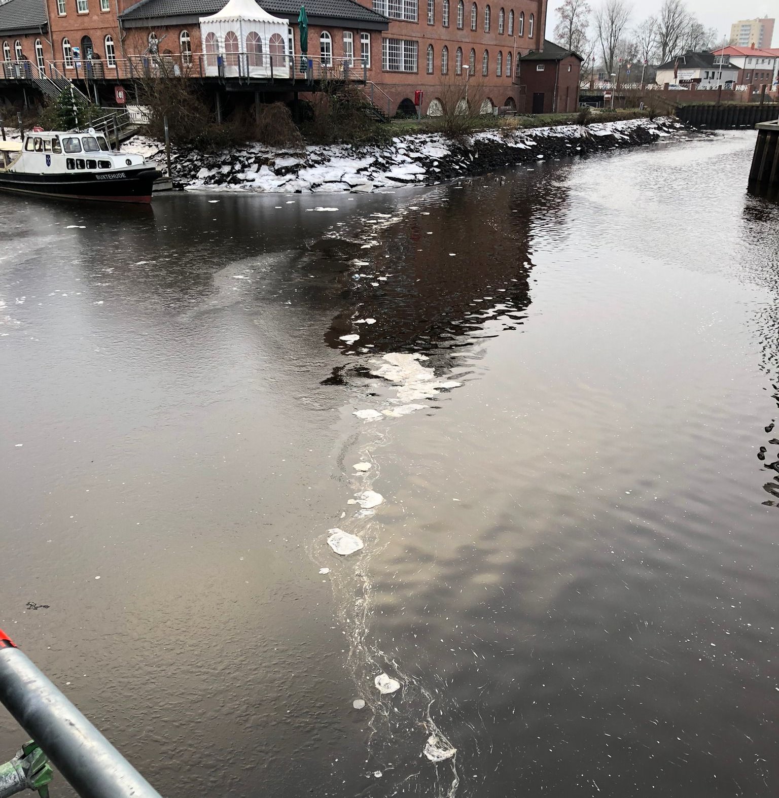 Eine Anruferin hatte am Montagnachmittag Schaumflocken auf der Este im Buxtehuder Hafen festgestellt und den Notruf gewählt.