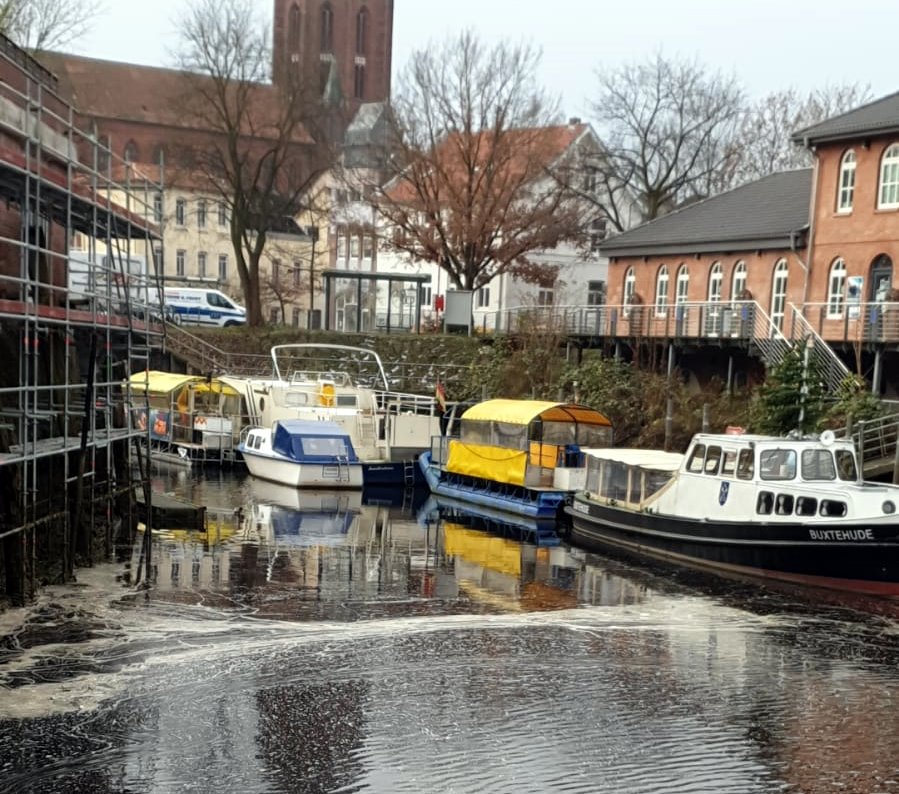Wie schon häufiger nach besonderen Wetterereignissen hatte sich am späten Dienstagmorgen ein leichter Schaumfilm auf der Wasseroberfläche der Este im Hafenbecken gebildet. Der Buxtehuder Ortsbrandmeister wurde zur Überprüfung angefordert, konnte aber rasch Entwarnung geben. Bei den Schaumflocken handelt es sich um Rückstände von sich zersetzenden Ästen und Laub, die bereits im Oberlauf der Este ins Wasser gelangt sind. Es besteht also kein Grund zur Beunruhigung.