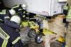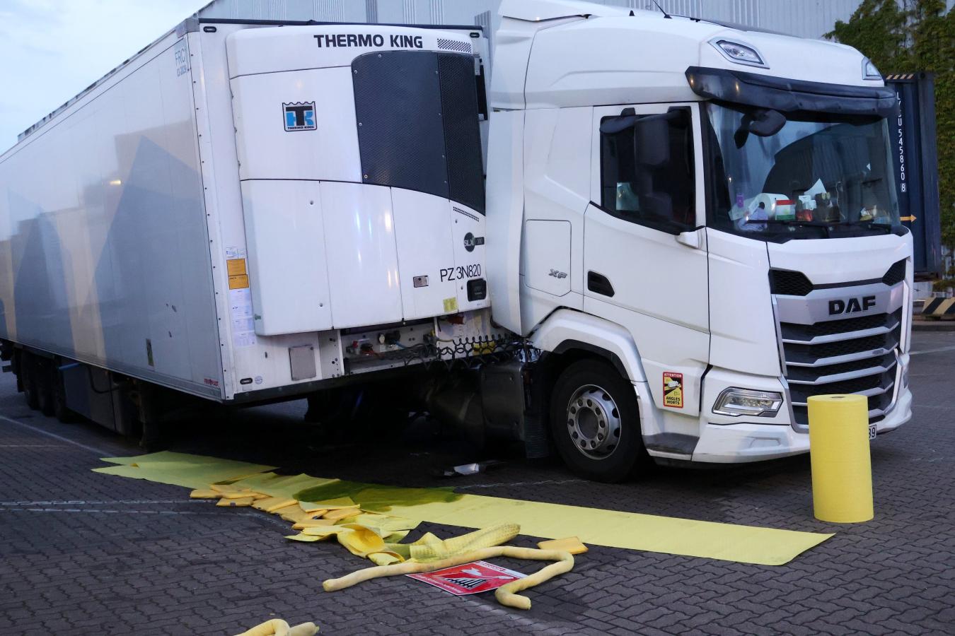 Auf dem Gelände eines Industriebetriebes kam es am Donnerstagabend zu einem leichten Unfall mit arbeitsintensiven Folgen. An einem Sattelschlepper hatte sich beim Rangieren der Auflieger gelöst und war von der Aufnahmeplatte gerutscht. Dabei riss an der Zugmaschine der Dieseltank auf. Kraftstoff trat in größerer Menge aus. Durch Mitarbeiter des Betriebes wurden auf dem Gelände Erstmaßnahmen ergriffen, die Regenabläufe abgedichtet und die Feuerwehr alarmiert. Dennoch war Diesel in das betriebsinterne Regenwasserauffangsystem eingedrungen, was durch eine Kontrolle bestätigt wurde. Die öffentliche Oberflächenentwässerung war nicht betroffen, da diese nicht mit dem werksinternen Netz verbunden ist. Noch in der Nacht traf eine angeforderte Spezialfirma zur Reinigung der betroffenen Rohrleitungen ein. Weiterhin wurde die Bergung des verunfallten LKWs für die frühen Morgenstunden organisiert. Die Fahrer kamen in einem Hotel unter.