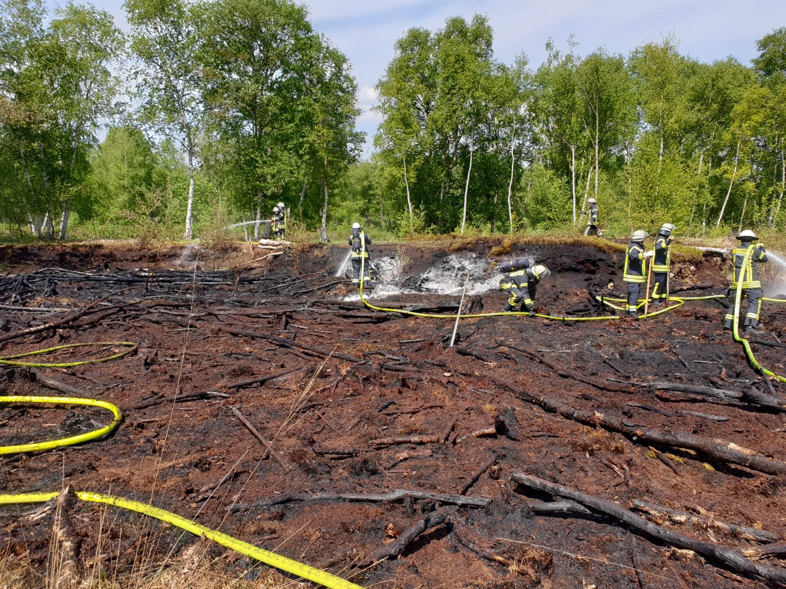 Beim Eintreffen der ersten von rund 60 eingesetzten Feuerwehrkräften, mit neun Einsatzfahrzeugen, stellte sich heraus, dass etwa 1500 Quadratmeter Moor im Ilsmoor in Flammen standen. Mehrere hundert Meter lange B-Leitungen mussten von der Gieselbertstraße zur Einsatzstelle in der Nähe des Umspannwerks gelegt werden, um ausreichend Löschwasser zur Brandstelle zu bekommen.