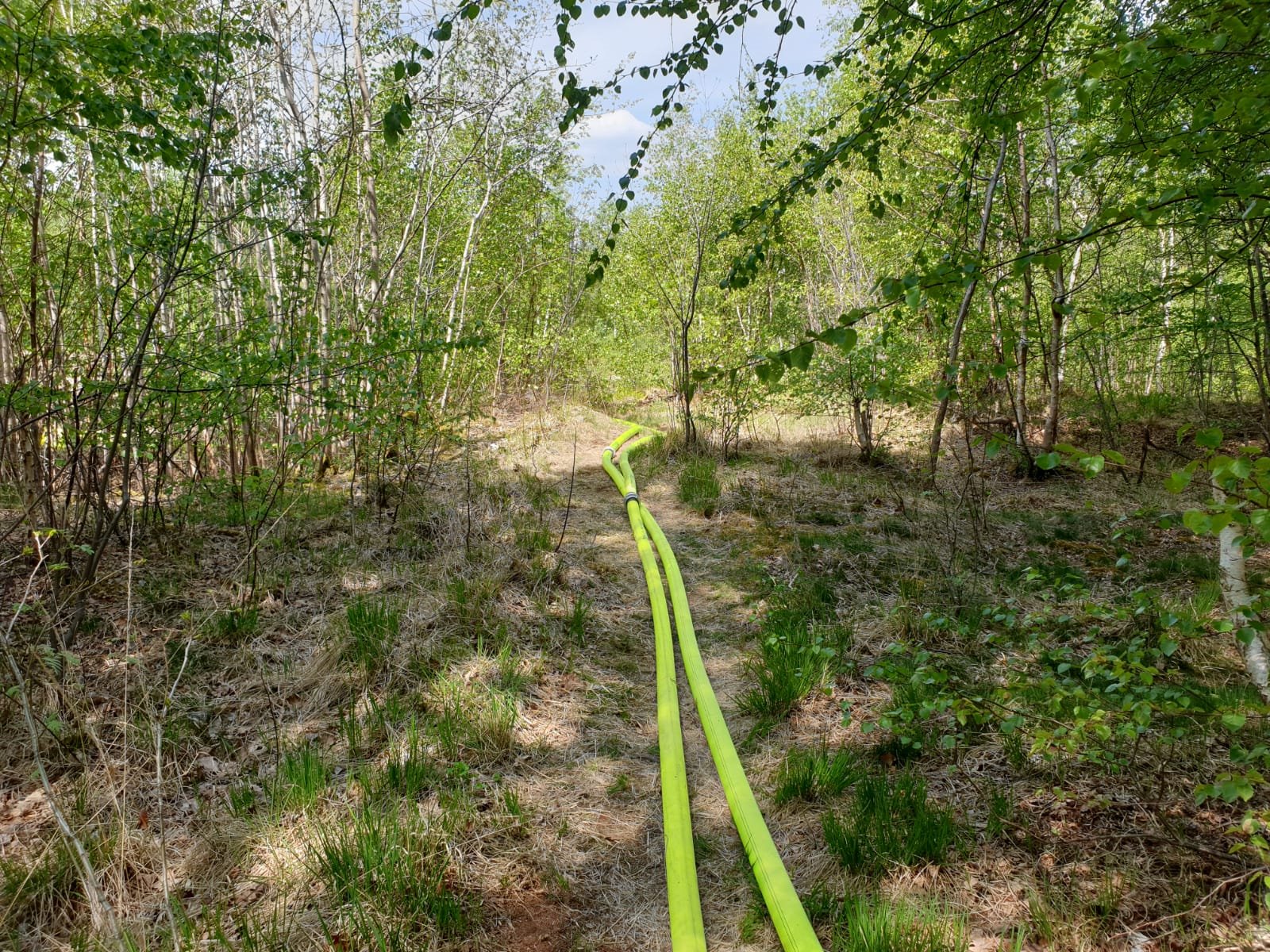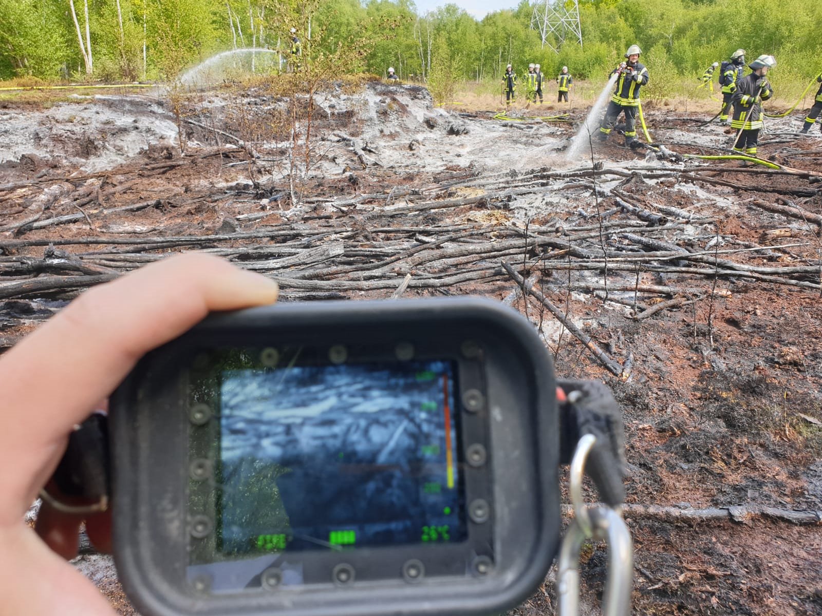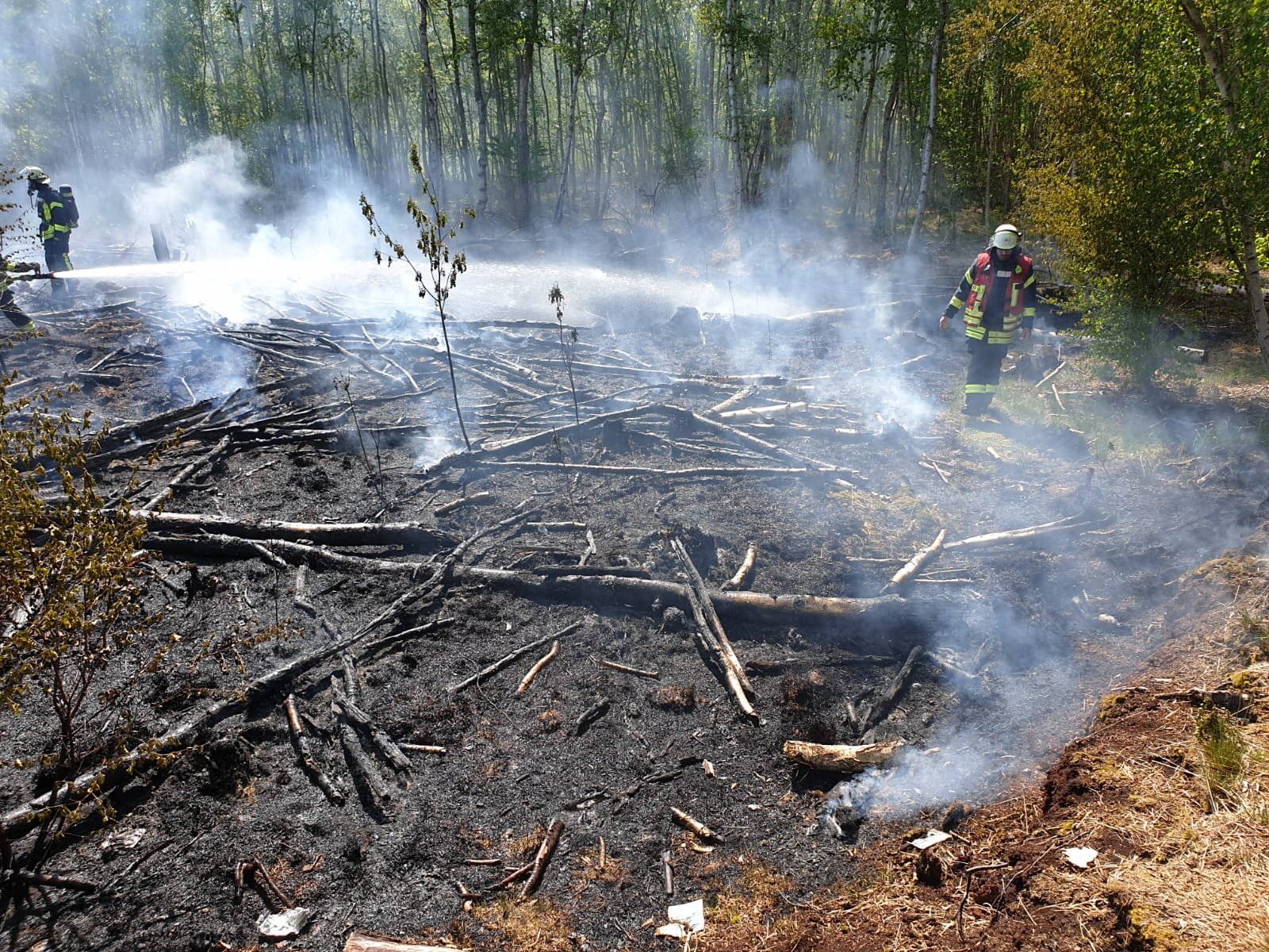 Insgesamt vier C- und zwei D-Rohre wurden zur Wasserabgabe eingesetzt. Kleinere Brandstellen konnten mit Feuerpatschen gelöscht werden. Zur Sicherheit wurde die Brandfläche mit einer Wärmebildkamera abgesucht, um weitere versteckte Brandnester gezielt ablöschen zu können.