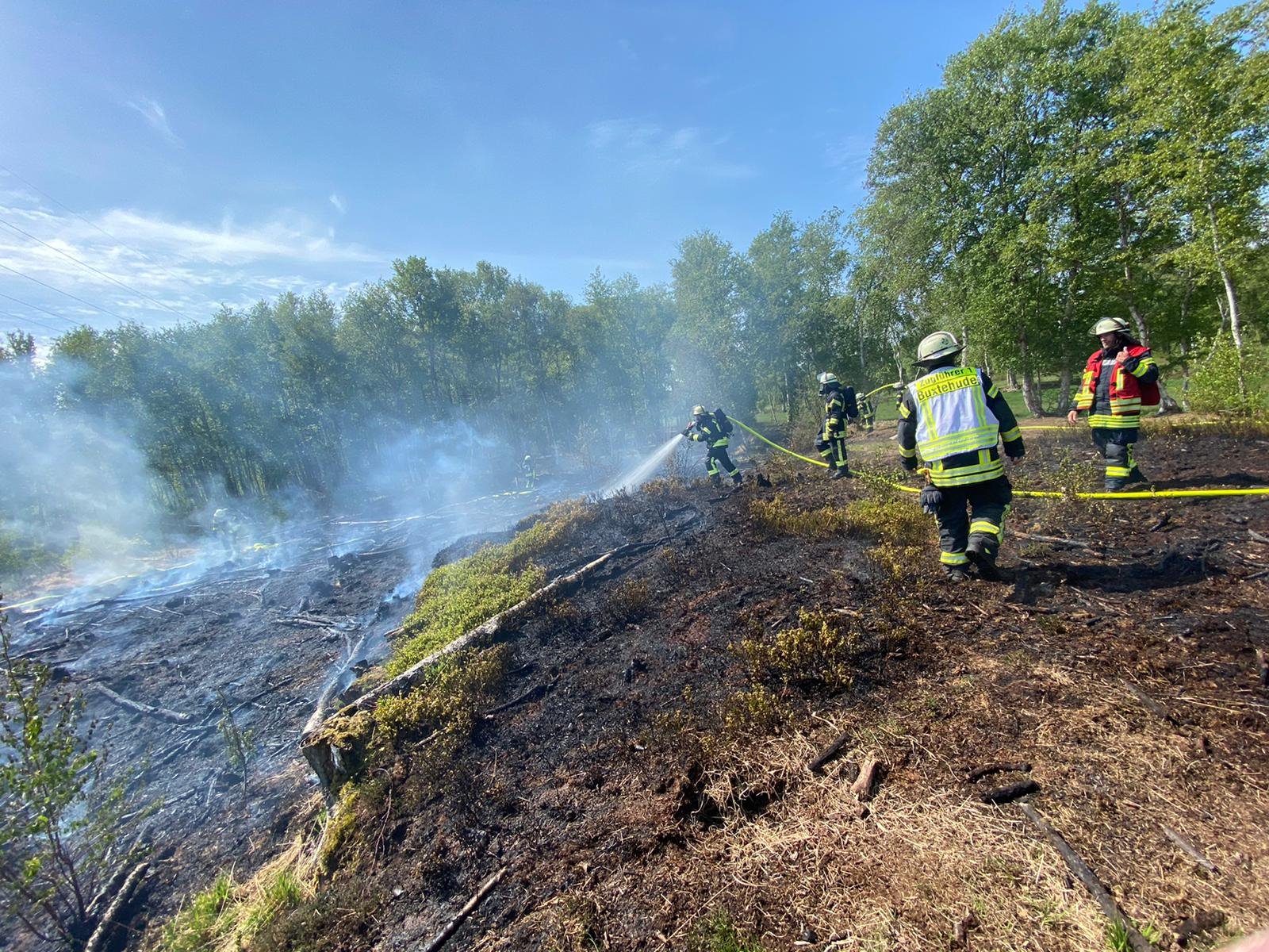 Von allen Seiten bekämpften die Einsatzkräfte den Flächenbrand. Aufgrund der teils immensen Rauchentwicklung war dies zeitweise nur unter schwerem Atemschutz möglich. Nachdem anfänglich nur Löschwasser verwendet wurde, sorgte beigemischtes Netzmittel im weiteren Verlauf für ein besseres Eindringen in die Bodenschichten. Durch das seifenartige Schaummittel wird die Oberflächenspannung verringert, so dass das Wasser weniger abperlt und besser eindringt.