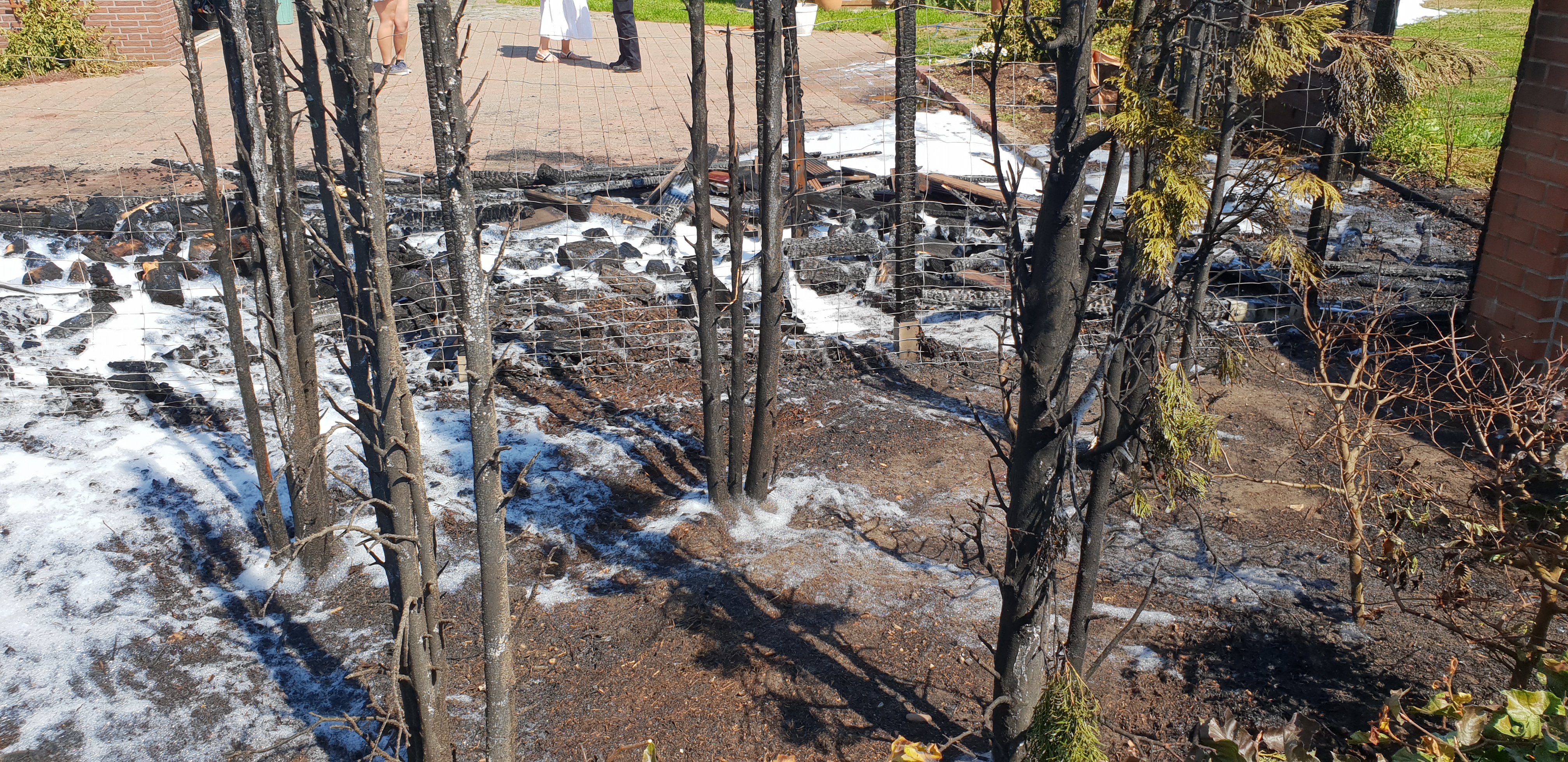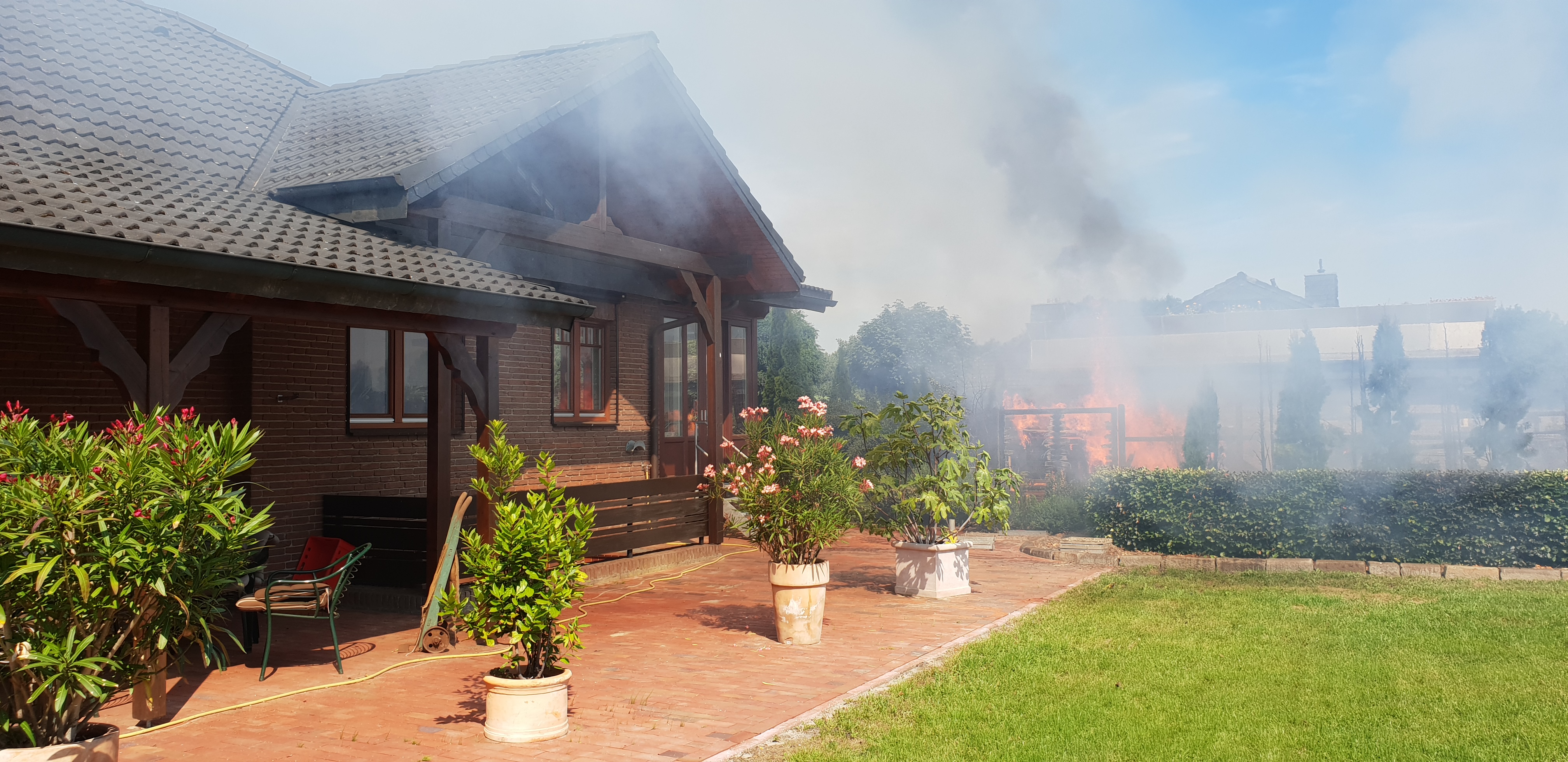 Unkraut mit Gasbrenner entfernt: Holzunterstand fängt Feuer