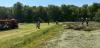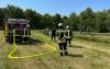 Vor Ort fuhren die Einsatzkräfte aus Dammhausen mit dem Tragkraftspritzenfahrzeug-Wasser die Einsatzstelle über das angrenzende Feld an. Es brannte eine größere Fläche gemähtes und trockenes Heu. Die Flammen drohten auf ein angrenzendes Waldstück überzugreifen. Mit zwei C-Rohren und dem Wasser aus dem eigenen Fahrzeugtank wurde zunächst die weitere Ausbreitung eingedämmt. Die nachrückenden Kräfte bauten eine Schlauchleitung zum Dammhauser Fahrzeug auf, welche dann durch die (Tank-) Löschfahrzeuge aus Neukloster und vom Zug I gespeist wurde.