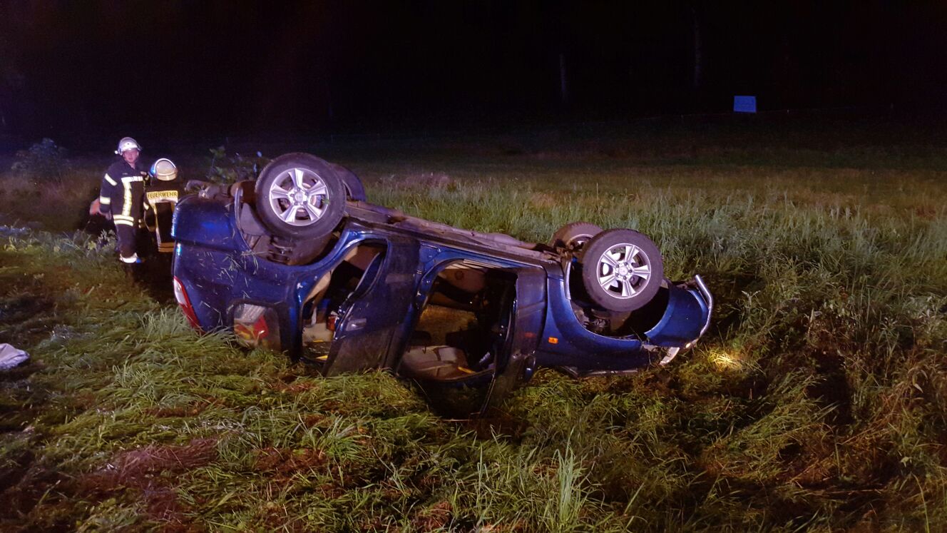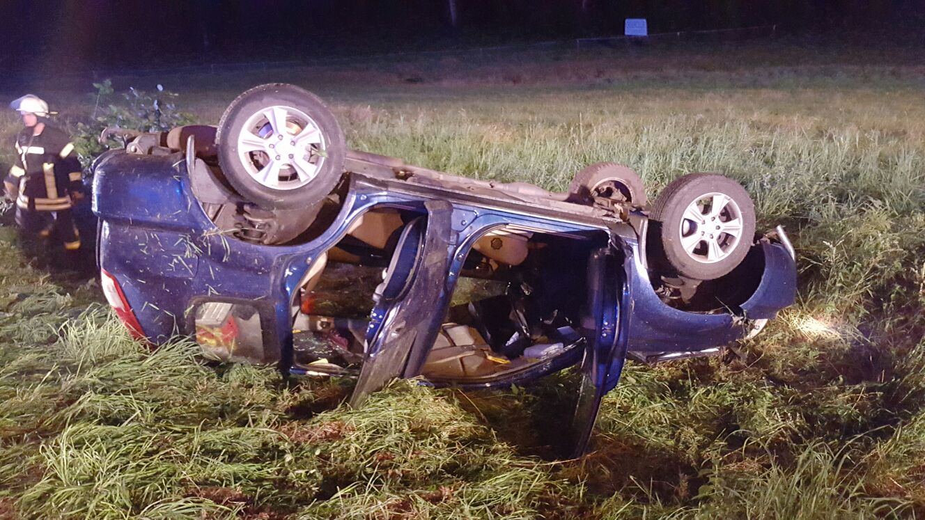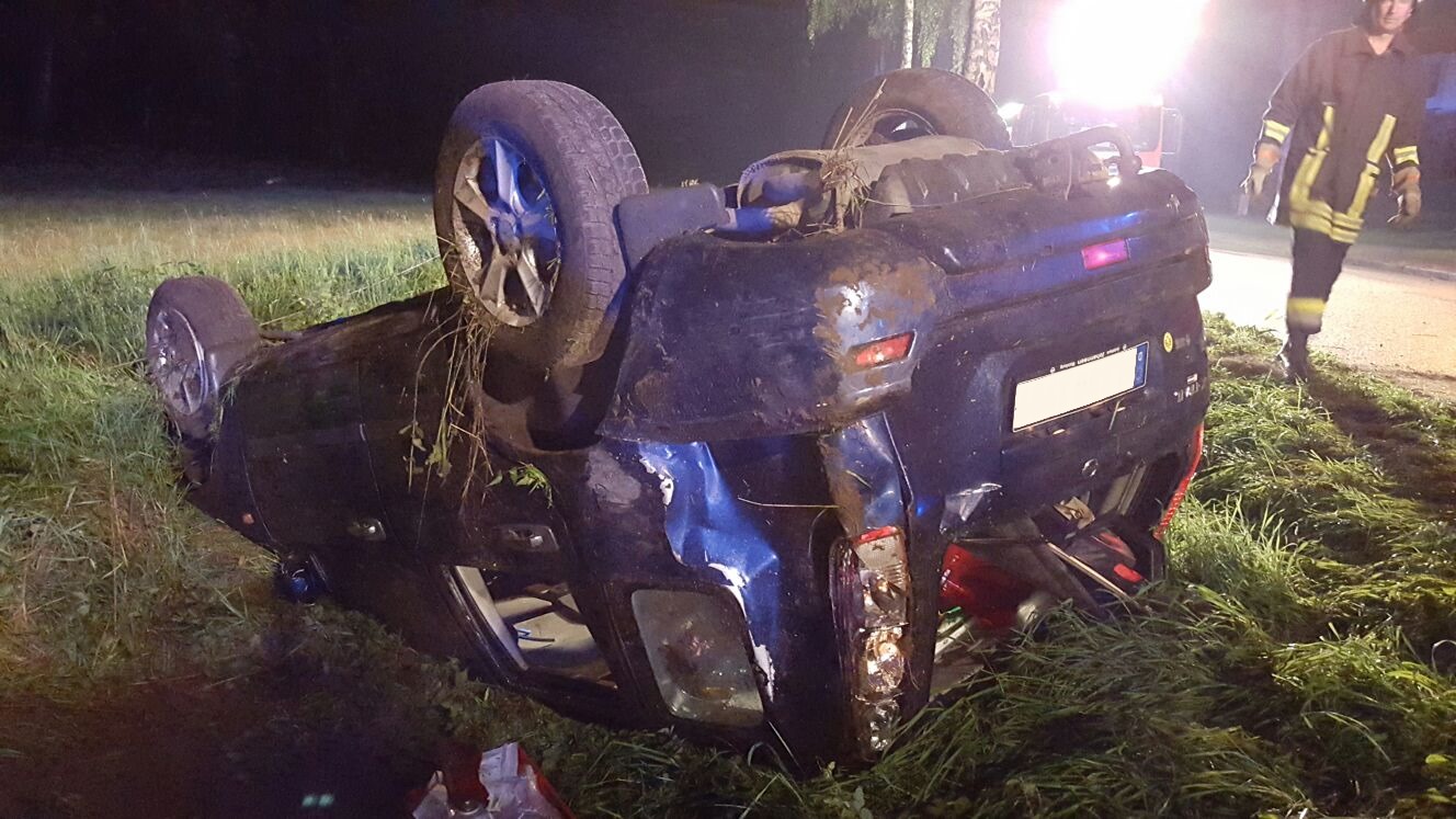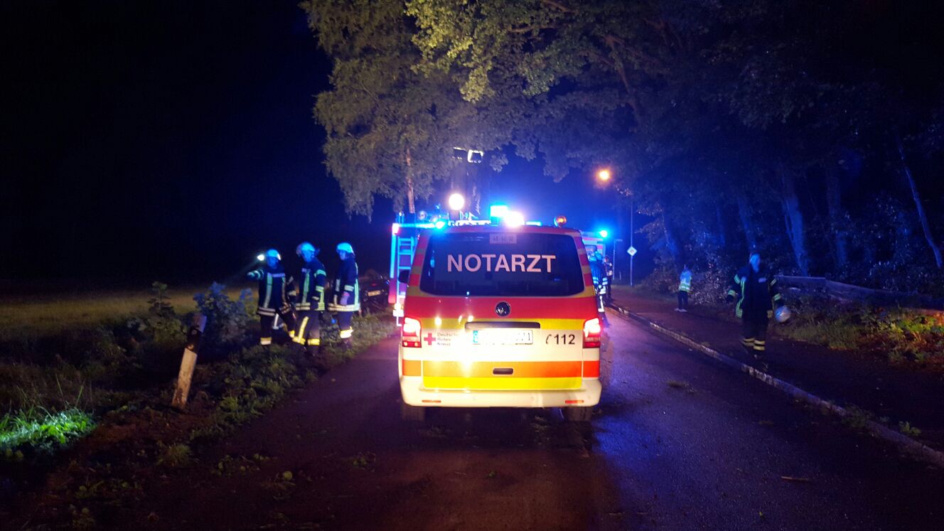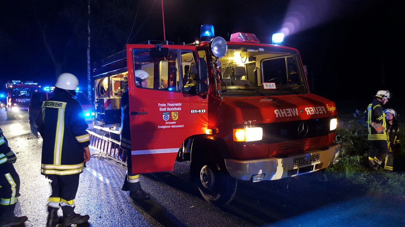 Zu einem Verkehrsunfall mit zwei eingeschlossenen Personen wurden in der Nacht zu Samstag die Ortsfeuerwehren aus Buxtehude (Zug I), Immenbeck und Ovelgönne alarmiert. Auf der Straße "Inne Beek" war der Fahrer mit seinem Fahrzeug nach links von der Fahrbahn abgekommen und hatte sich im Graben überschlagen. Der PKW blieb auf dem Dach liegen.