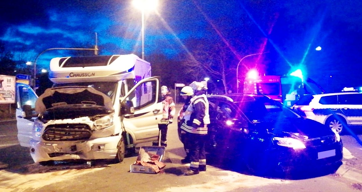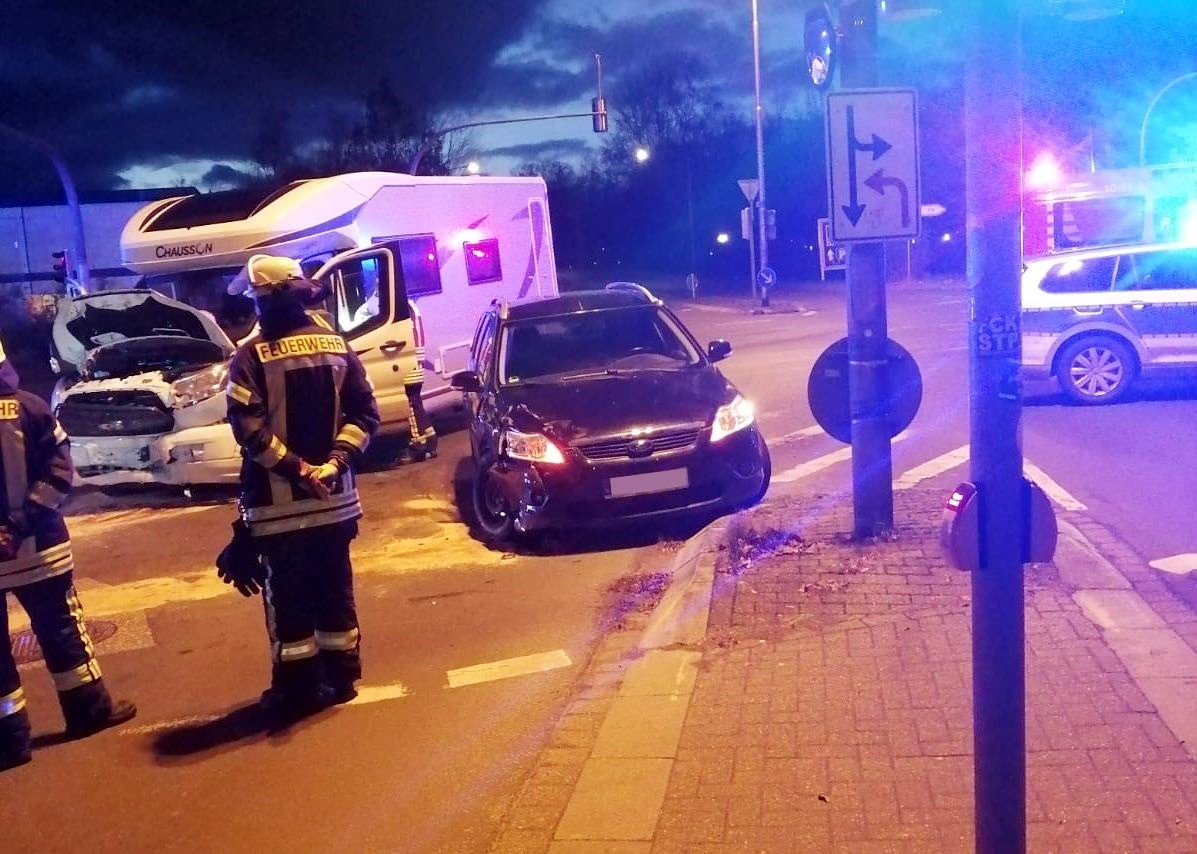 Am Sonntagnachmittag kam es bei einem missglückten Abbiegevorgang an der Kreuzung Stader Straße / Konrad-Adenauer-Allee zu einem schweren Verkehrsunfall zwischen einem PKW und einem Wohnmobil. Eingeklemmt war niemand. Die Beifahrerin des Wohnmobils wurde verletzt und musste nach der Erstversorgung durch den Rettungsdienst ins Krankenhaus gebracht werden.