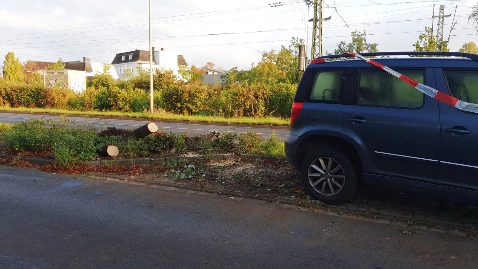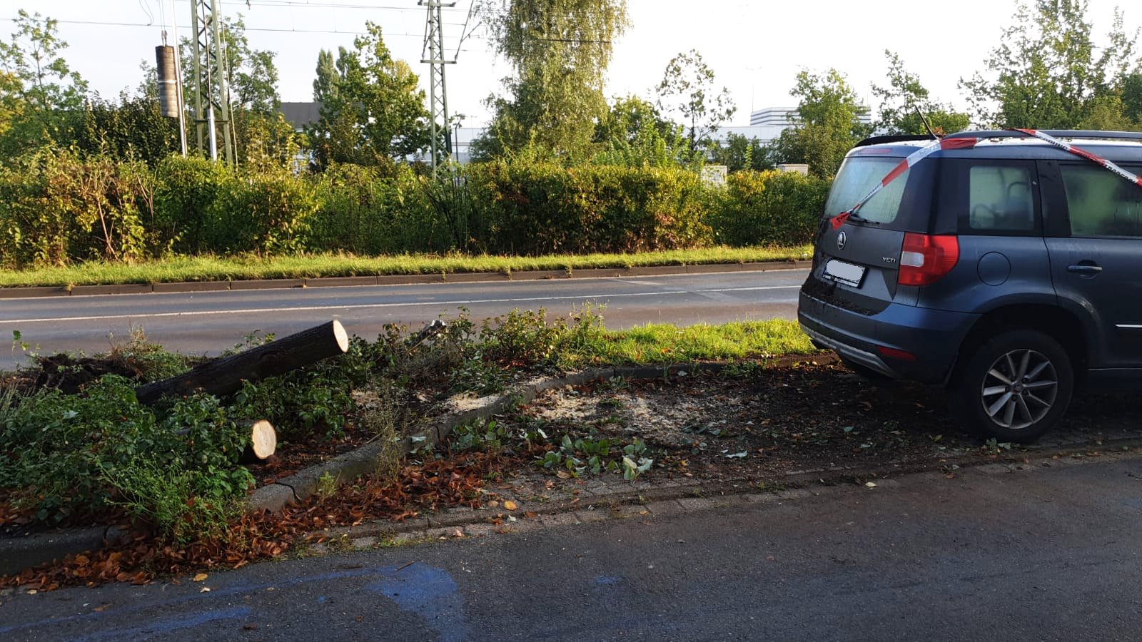 In der Nacht zu Samstag kam es auf der Stader Straße paarallel zur Bahnlinie zu einem Verkehrsunfall, bei dem ein Fahrzeug in den rechten Seitenraum geriet und einen dortigen Straßenbaum entwurzelte. Der Baum kippte um und stürzte auf einem parkenden PKW.