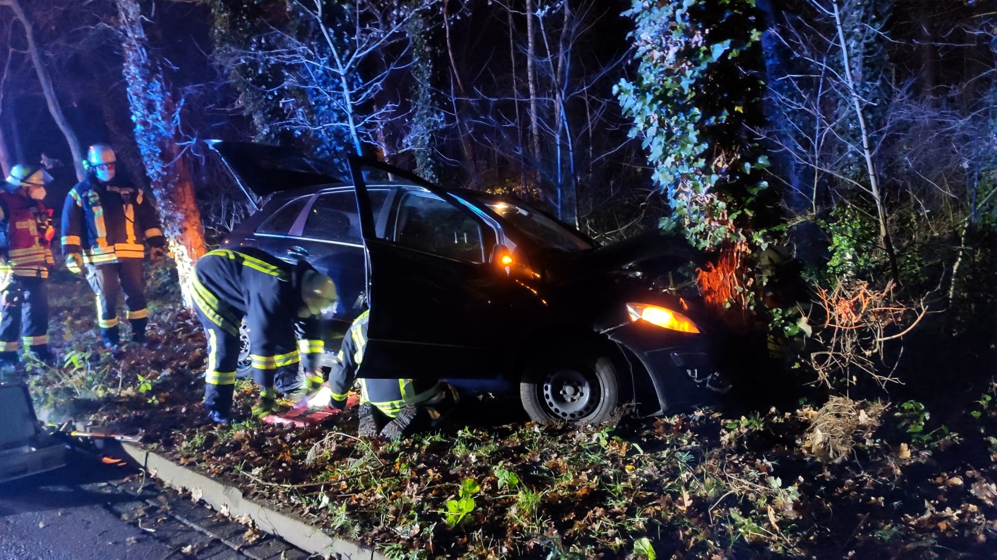 Beim Einbiegen in den Eibenweg verlor am späten Samstagabend die Fahrerin eines Kleinwagens die Kontrolle über ihr Fahrzeug. Der Wagen überfuhr eine Verkehrsinsel, geriet auf die Gegenfahrbahn und kam im gegenüberliegenden Seitenraum an einem Baum zum Stehen. Die Fahrerin blieb dabei unverletzt.