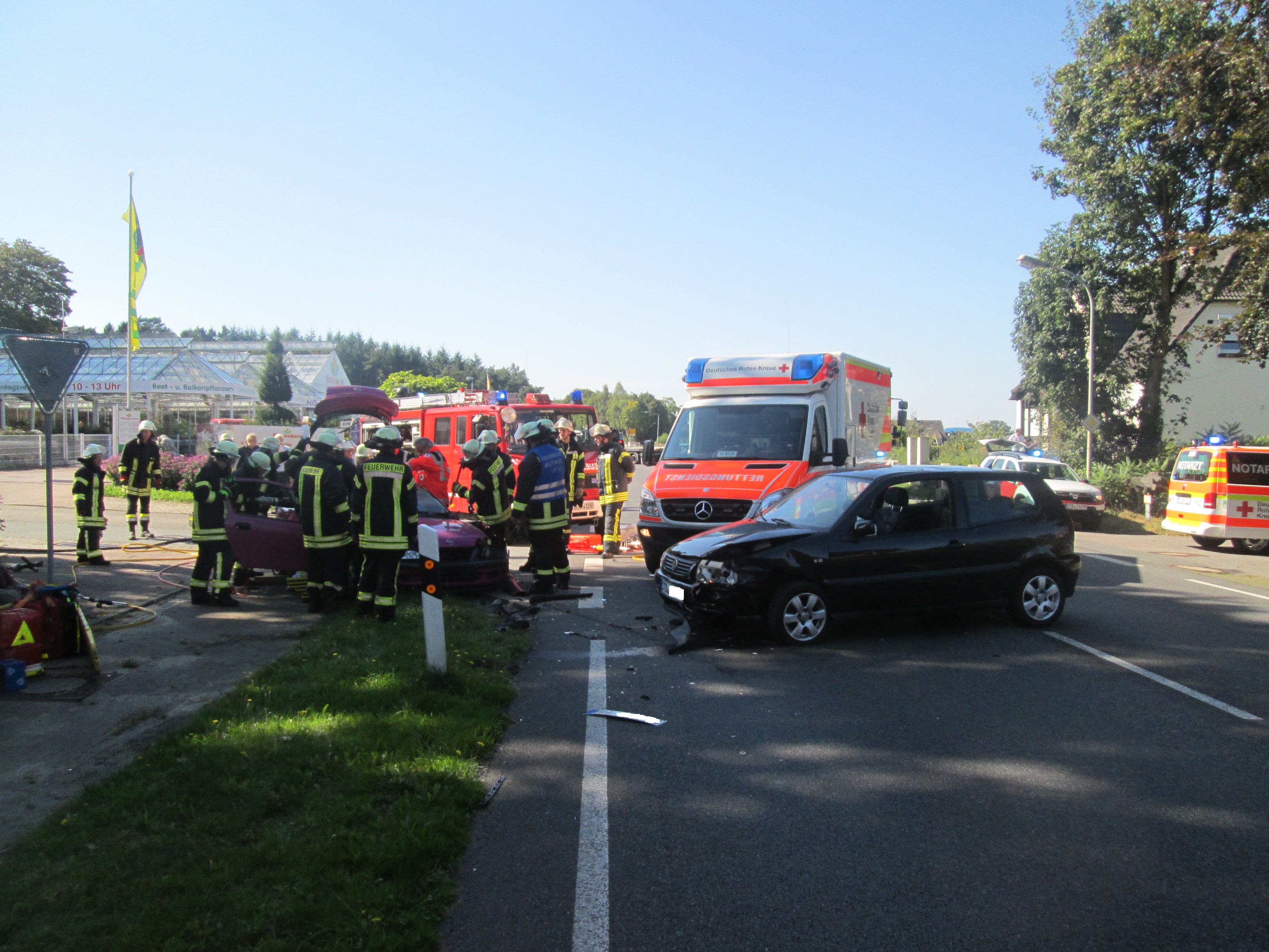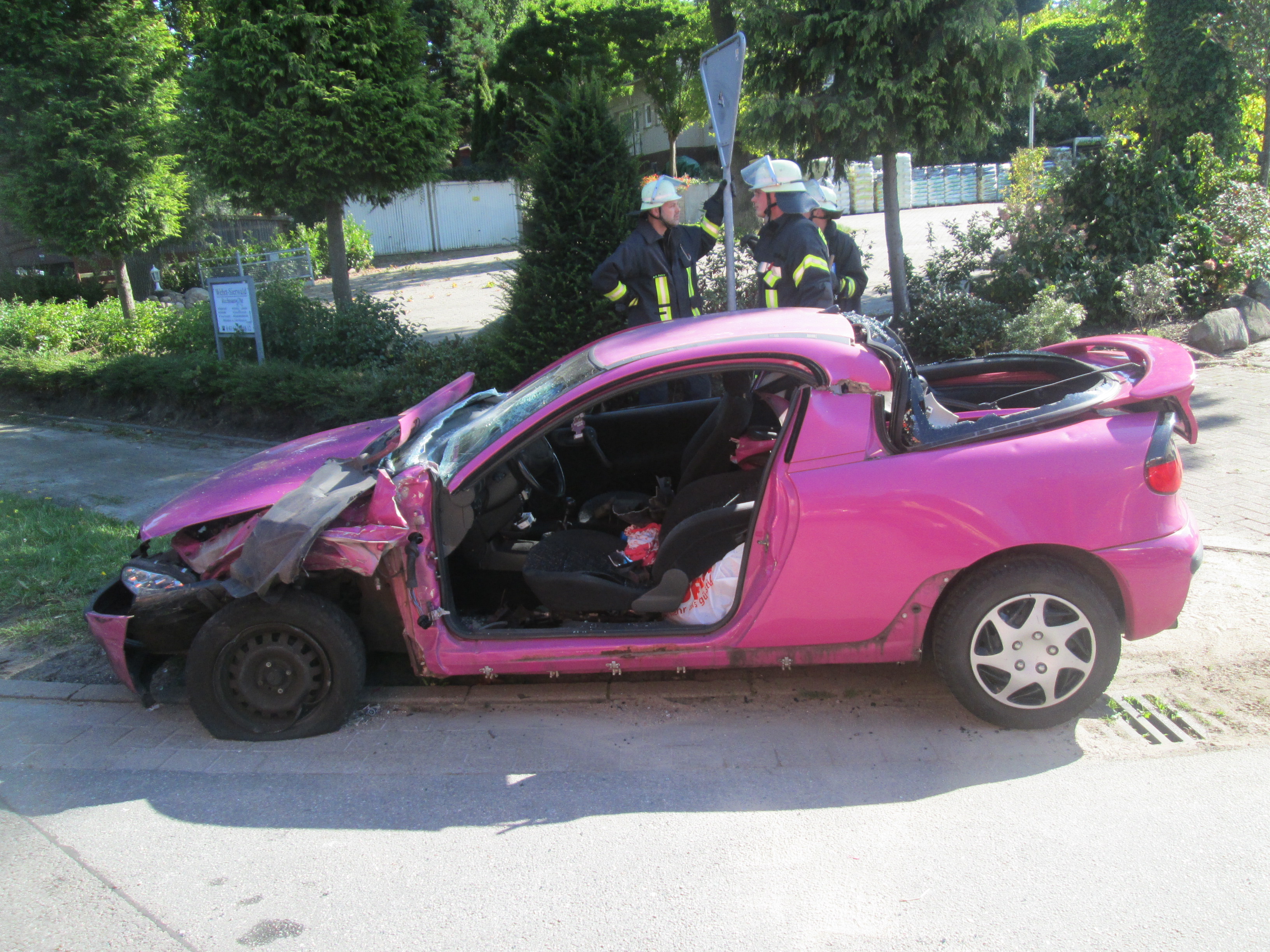 Aufgrund der Vermutung einer Rückenverletzung musste eine der beiden Personen schonend aus dem Fahrzeug befreit werden. Hierfür wurden durch die Feuerwehr Türen und Dach des PKWs entfernt.