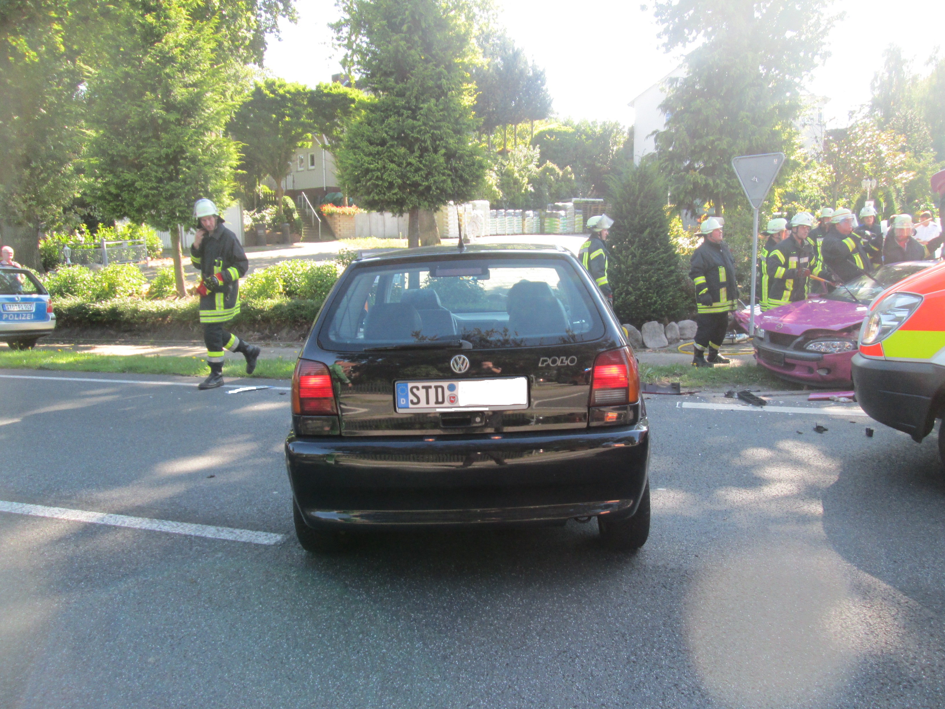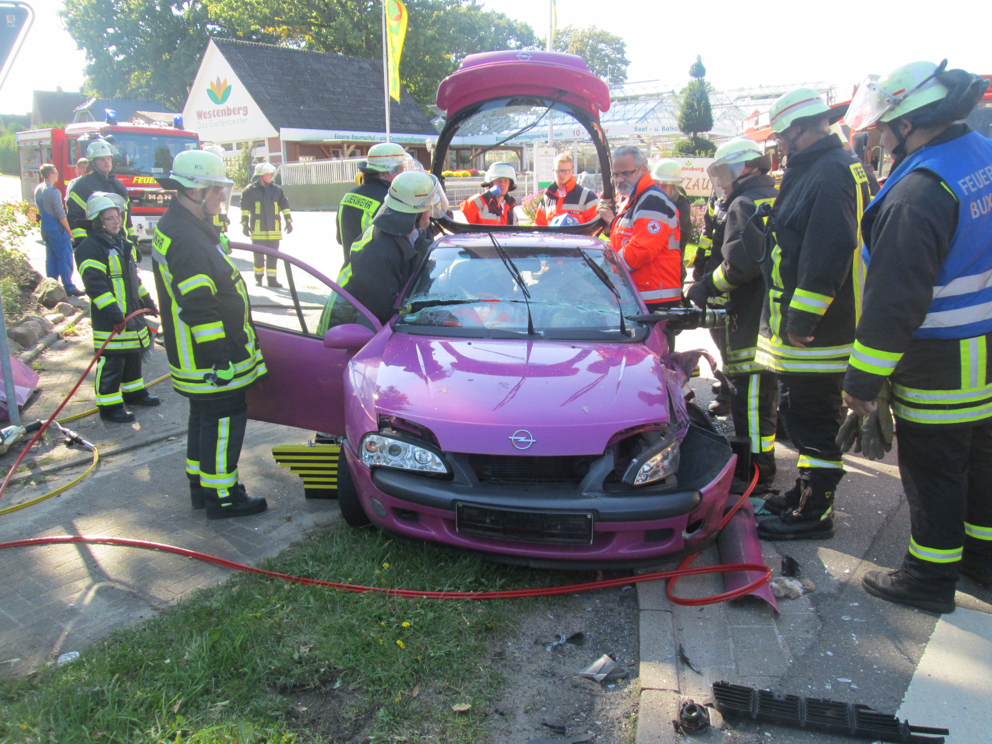Zu einem schweren Verkehrsunfall mit zwei beteiligten Fahrzeugen mussten die Ortsfeuerwehren aus Immenbeck, Ovelgönne und Buxtehude (Zug I) am Donnerstagnachmittag auf die B73 in Immenbeck ausrücken. Eine Buxtehuderin war mit ihrem Fahrzeug aus Richtung Hamburg kommend auf die Gegenfahrbahn gekommen und dort mit einem mit zwei Personen besetzten zweiten Fahrzeug frontal kollidiert.