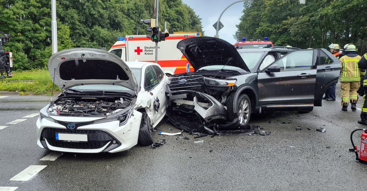 Beim Eintreffen der ersten Feuerwehrkräfte waren zwei PKW im Kreuzungsbereich frontal kollidiert. Eine leichtverletzte Person wurde bereits durch den ebenfalls alarmierten Rettungsdienst versorgt. Weitere Verletzte waren nicht zu beklagen.