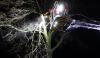 Der letzte Einsatz des Abends ging dann wieder an den Zug I, genauer gesagt die Drehleiter - zu einem überörtlichen Einsatz nach Bliedersdorf / Rutenbeck. Dort war die Ortsfeuerwehr Bliedersdorf bereits aktiv. Ein Baum war an der K37 kurz hinter der Kreuzung Hohebrügge auf einen fahrenden PKW gestürzt. Verletzt wurde niemand. Durch die bereits tätigen Einsatzkräfte wurde die Fahrbahn geräumt und beschädigte Äste eines Baumes im unteren Bereich entfernt. Aufgabe der Drehleiter war es, den beschädigten Baum in der Krone auszusägen. Diese wurde mit der Akku-Säbelsäge übernommen.