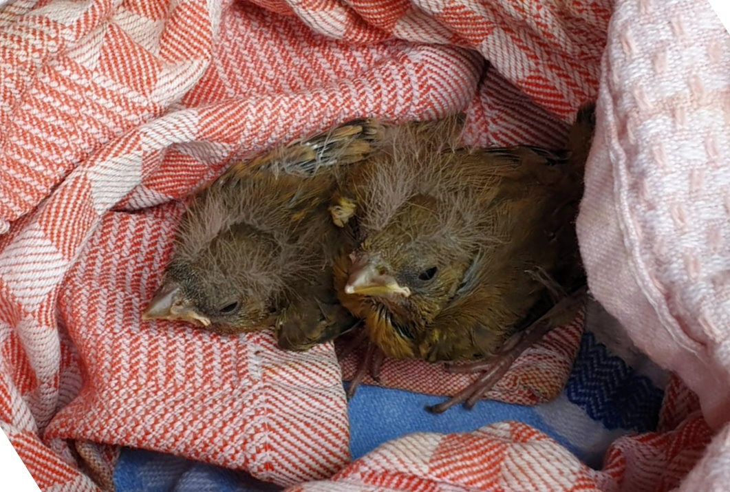 Der eintreffende Ortsbrandmeister hielt nach der ersten Begutachtung der beiden vermutlich aus dem Nest gefallenen Buchfinkenküken Rücksprache mit einer Tierärztin. Auf Empfehlung wurden die beiden bereits gut gefiederten und flüggen Tiere möglichst katzensicher in eine Hecke gesetzt. In der guten Hoffnung, dass die Mutter die beiden rufenden Tiere wieder angenommen hat, wurde der Einsatz beendet.