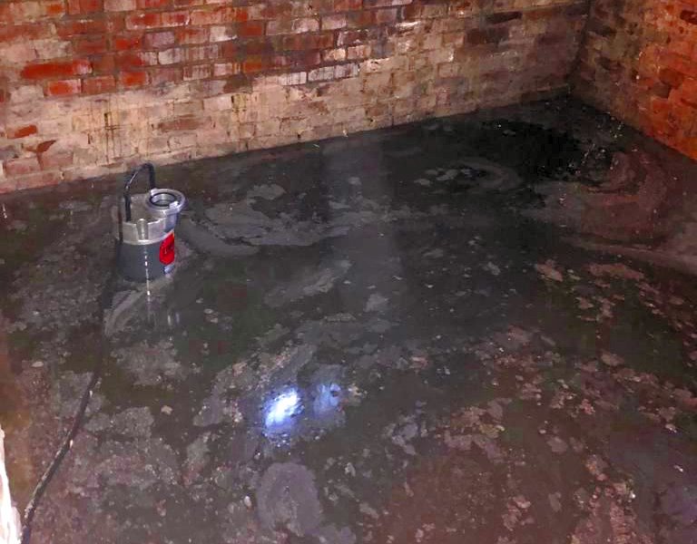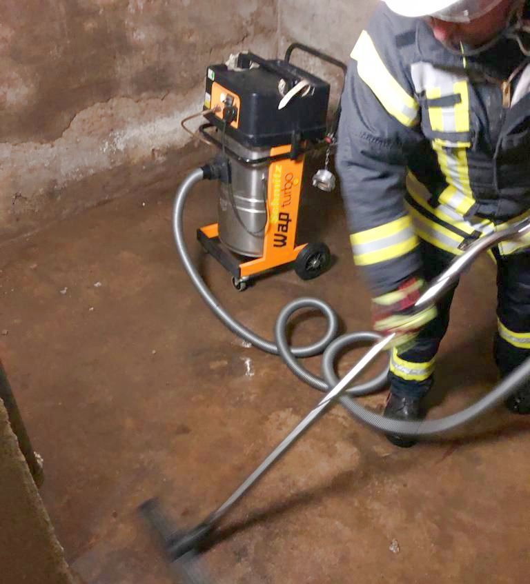 Nachdem das meiste Wasser abgepumpt war, konnten die Reste mit einem Wassersauger aufgenommen werden.