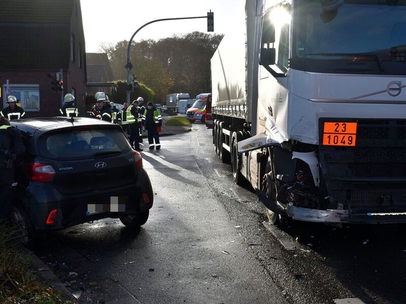 Der Lkw-Fahrer blieb unverletzt, so Feuerwehrsprecher Timm Gerken gegenüber dem TAGEBLATT. Die Kleinwagen-Fahrerin gab an, beim Abbiegen von der tiefstehenden Sonne geblendet worden zu sein.