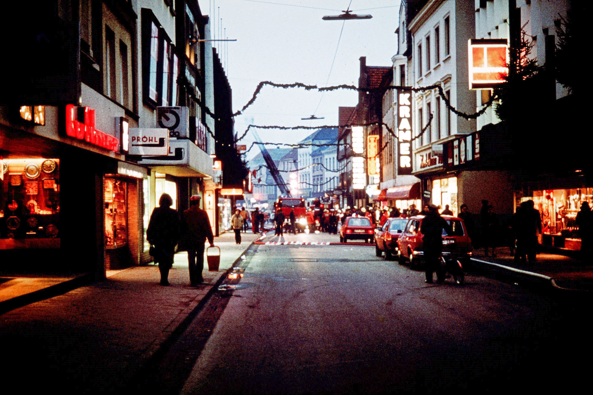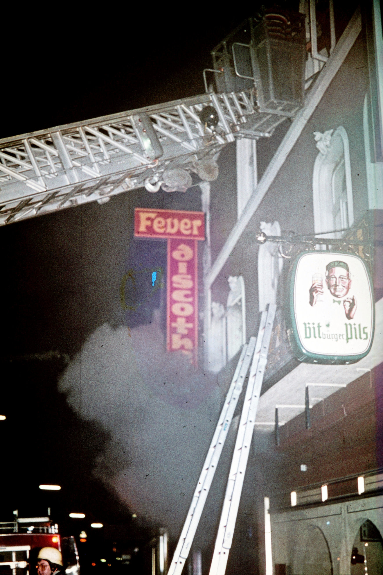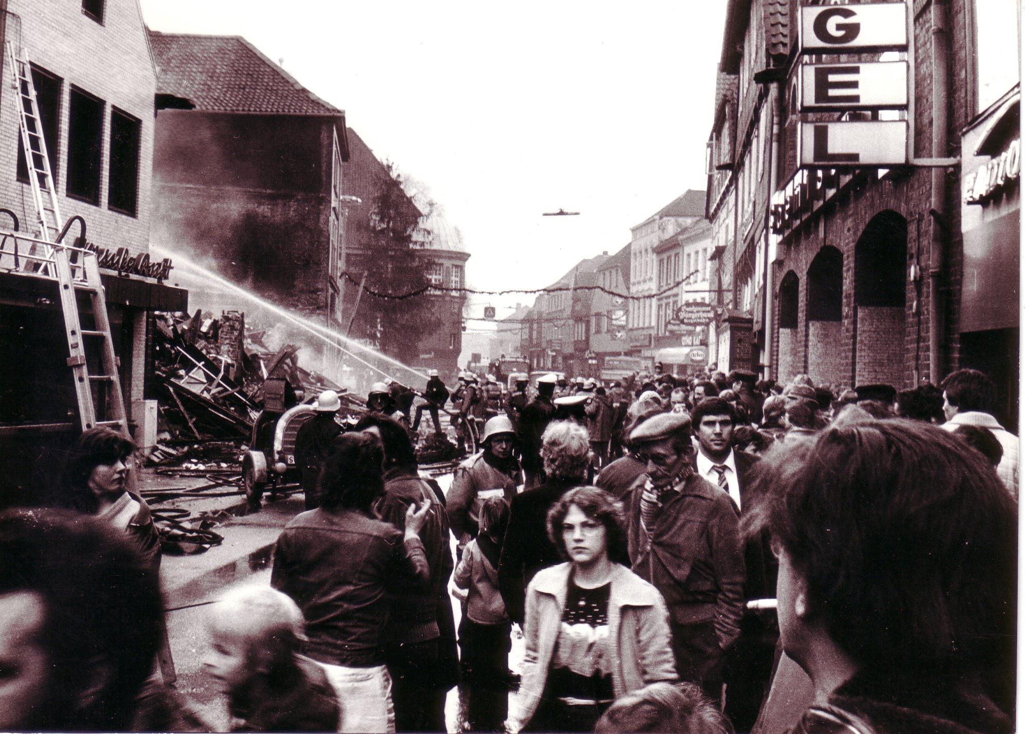 Es war der 24.12.1980, morgens gegen kurz vor fünf Uhr. Ein Fischlieferant fuhr mit seinem Lieferwagen durch die Lange Straße und bemerkte in Höhe der Diskothek Fever einen "Nebel" aus dem Eingangsbereich aufsteigen. Geistesgegenwärtig wählte er den Notruf und verständigte die Buxtehuder Polizei, die wiederum unverzüglich Feueralarm auslöste. "Neunmal" heulten in Buxtehude die Sirenen, so schrieb es das Buxtehuder Tageblatt später im großen Bericht über den größten Brand in der Buxtehuder Altstadt nach 1911.