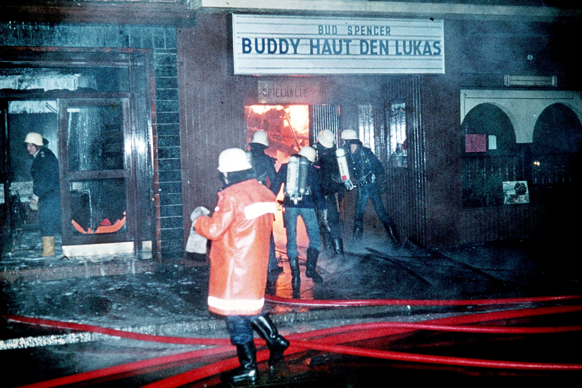 Der frühere Buxtehuder Ortsbrandmeister Jürgen Hausmann erinnerte sich später im Tageblatt Interview: „Ich war als einer der ersten mit unserem Tanklöschfahrzeug vor Ort“, 1980 war Hausmann noch stellvertretender Zugführer vom Zug I, das Kommando hatte Stadtbrandmeister Karl-Heinz „Kuddel“ Jäschke. Gemeinsam mit zwei Kameraden wollte sich Hausmann unter Atemschutz ein Bild von der Situation verschaffen. Der Gang war dunkel – und voller Rauch. Es war „heiß wie in der Hölle“. Dann ging irgendwo eine Tür auf, das Feuer fand neue Nahrung. „Die ganze Decke war plötzlich ein einziger Flammenteppich, so ein ‚schönes‘ Feuer habe ich nie wieder gesehen“, sagte Hausmann, „wir löschten im Rückwärtsgang.“