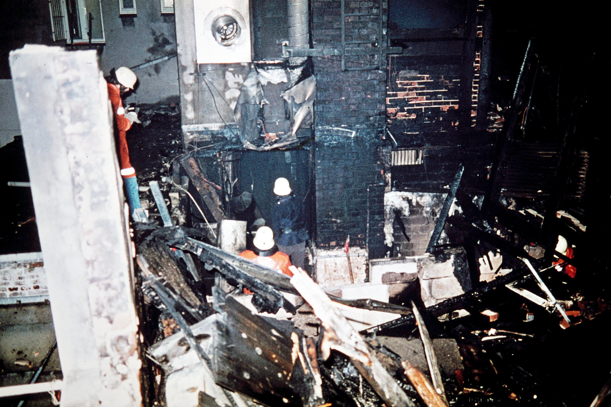 Eine Brandwache beobachtete den rauchenden Trümmerhaufen noch während der Weihnachtstage; Am ersten Weihnachtstag löste die Feuerwehr erneut Alarm aus: In dem stehengebliebenen Geschäftshaus war erneut offenes Feuer ausgebrochen, das aber schnell gelöscht werden konnte.