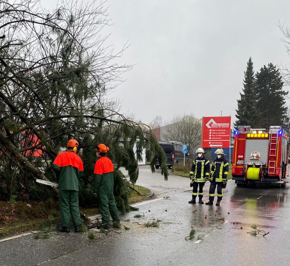 In den Mittagsstunden rückte der Zug II der Ortsfeuerwehr Buxtehude in den Alten Postweg aus. Nahe dem Bahnübergang des Industriegleises war aus einem Nadelbaum ein großer Ast herausgebrochen, der, noch am Stamm hängend, eine Fahrspur versperrte. Die Einsatzkräfte sägten den Ast soweit zurück, dass die Straße wieder gefahrlos befahren werden konnte.