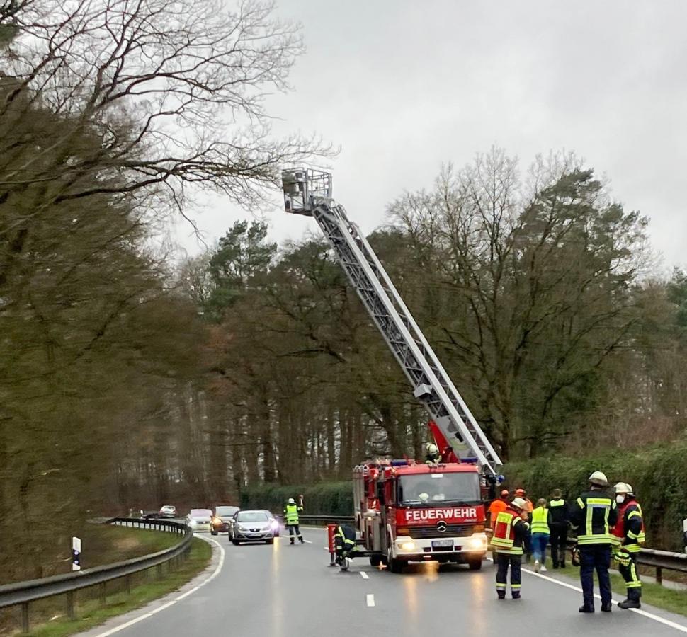 Am Morgen wurden zunächst die Drehleiter vom Zug I und die Einsatzkräfte aus Neukloster auf die B73 alarmiert. Im Bereich "Grüner Wald" drohte ein größerer Ast aus einem Baum zu brechen und auf die Fahrbahn der Bundesstraße zu fallen. Die Besatzung des Hubrettungsfahrzeugs entfernte den herabhängenden Ast aus dem Drehleiterkorb. Die Neuklosteraner Kräfte beseitigten das Hindernis am Boden. Kurz danach konnte die Straße wieder freigegeben werden, die Einsatzkräfte rückten ein.