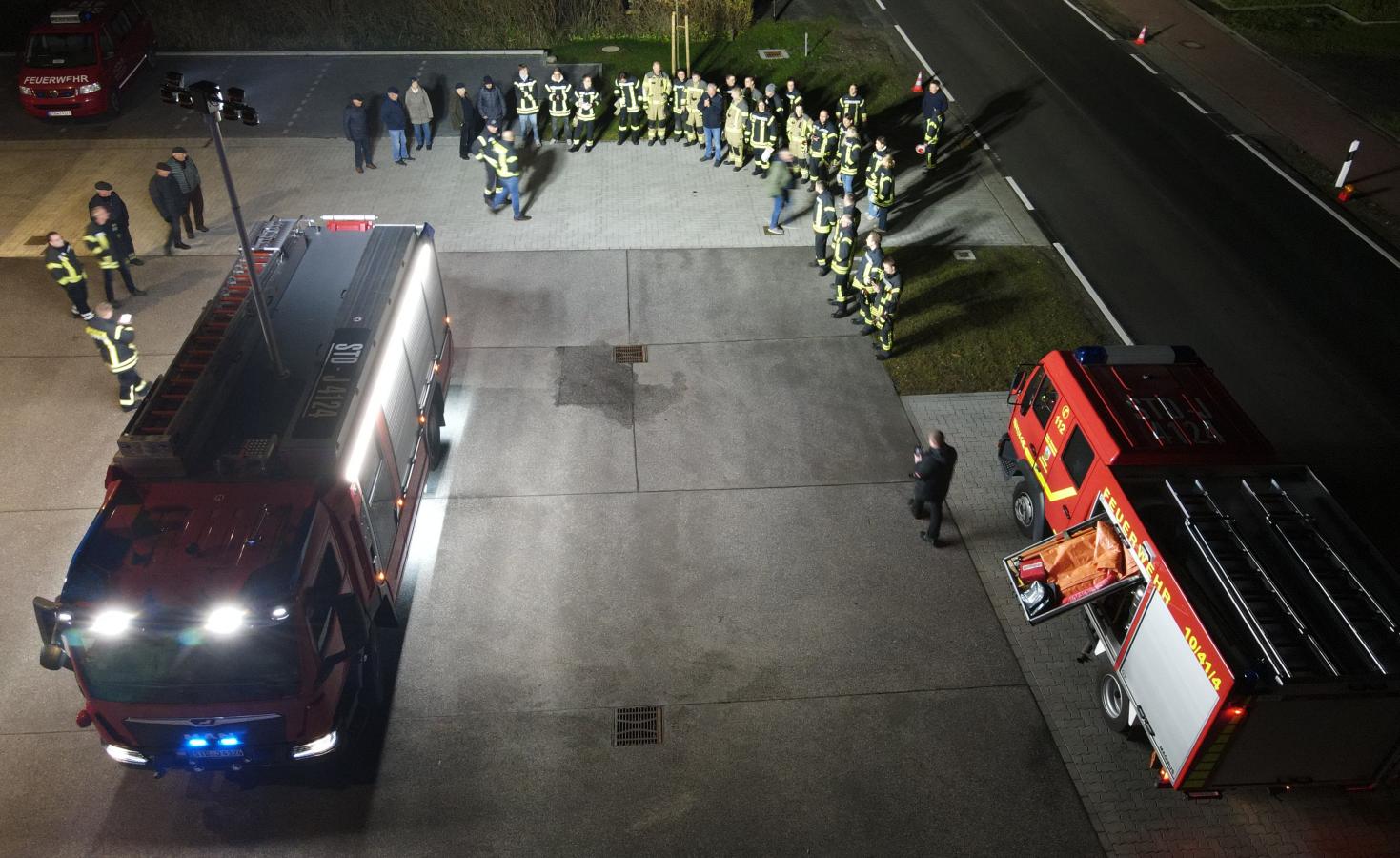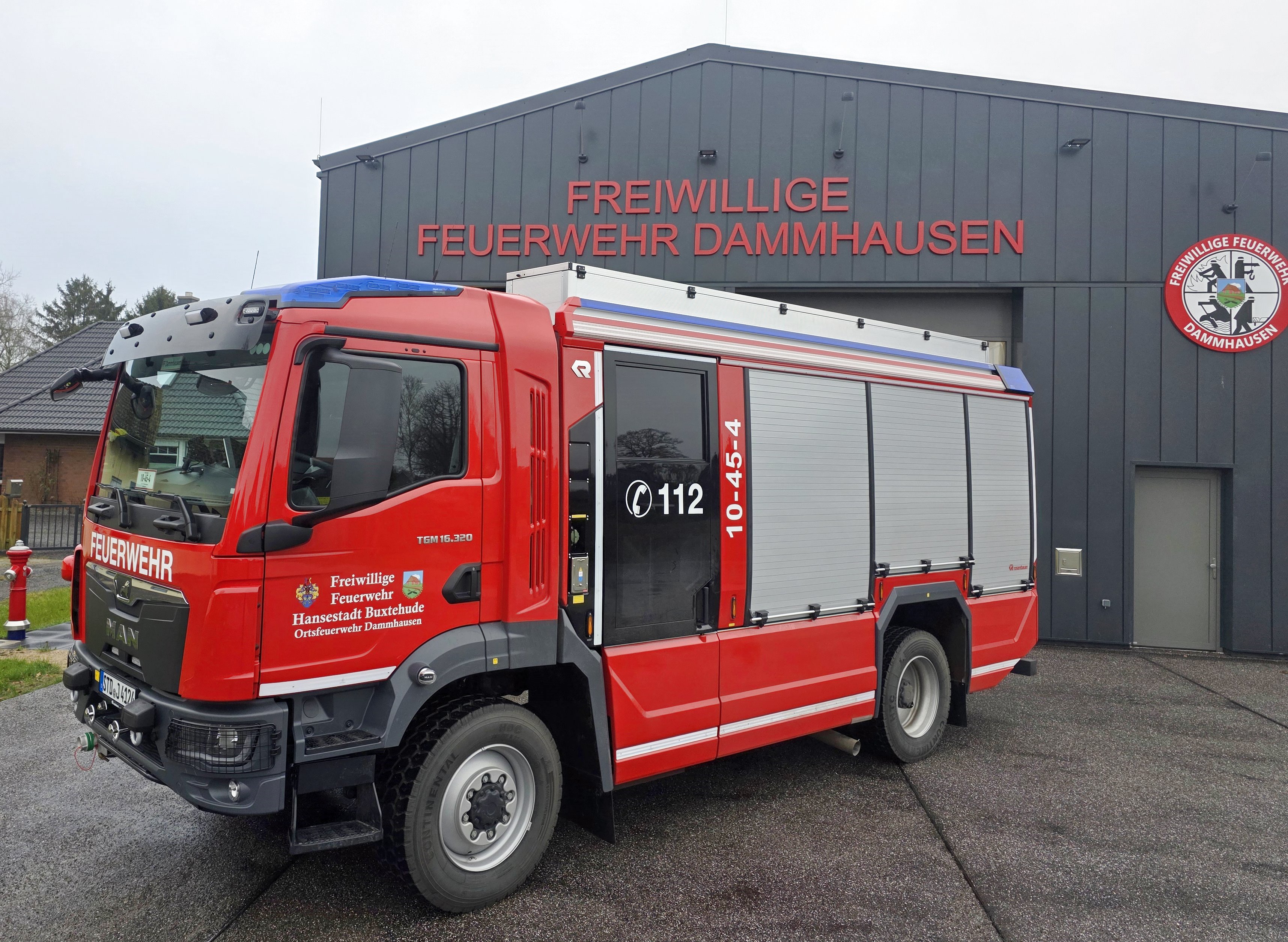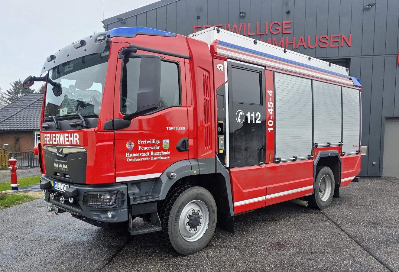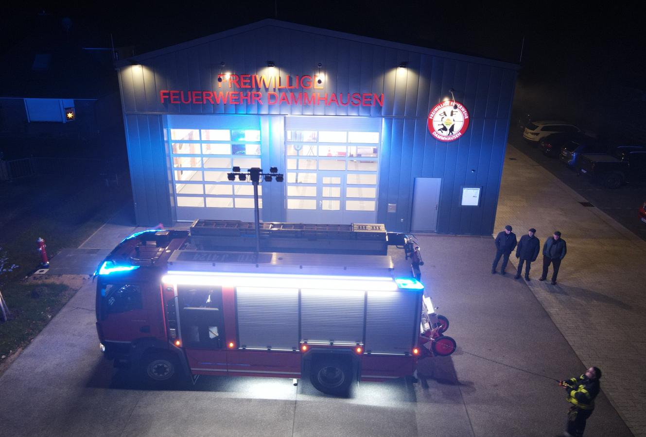 Ein glückliches Jahr geht für die Ortsfeuerwehr Dammhausen zu Ende. Kurz vor dem Jahreswechsel konnte die Wehr ihr neues Feuerwehrhaus in der Dammhauser Straße 33 beziehen. Mit eingezogen ist auch ein brandneues Löschgruppenfahrzeug, welches am 05.12.2025beim Aufbauhersteller Rosenbauer abgeholt werden konnte. Festlich illuminiert wurde das LF 10 auf MAN TGM Fahrgestell am selben Abend in Empfang genommen.