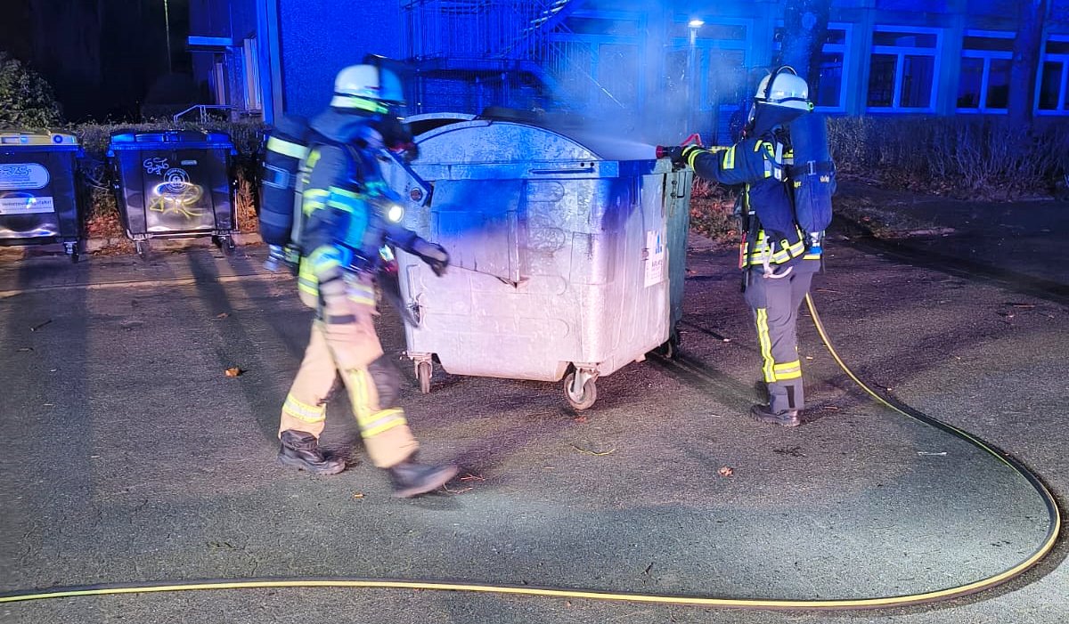 Zwei brennende Altpapiercontainer
