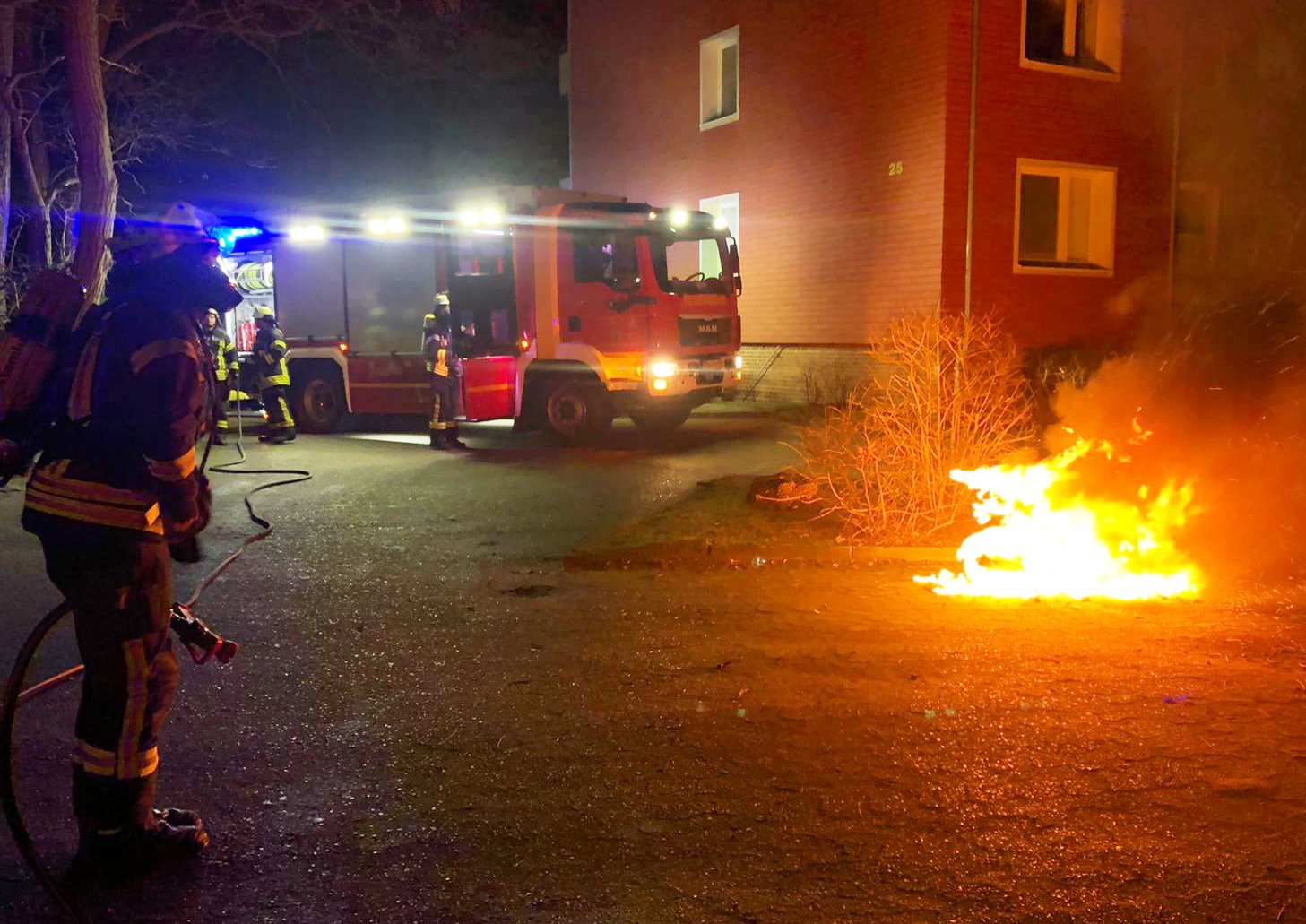 Eine brennende Mülltonne wurde den Einsatzkräften vom Zug II der Ortsfeuerwehr Buxtehude am Dienstagabend gemeldet. Das Hilfeleistungslöschfahrzeug und der Einsatzleitwagen rückten aus. Vor Ort in der Schanzenstraße stand unweit eines Mehrfamilienhauses ein Müllcontainer in Flammen. Der eingesetzte Atemschutztrupp löschte das Feuer mit dem Schnellangriffsschlauch. Nach etwa einer halben Stunde rückten die Einsatzkräfte wieder ein.