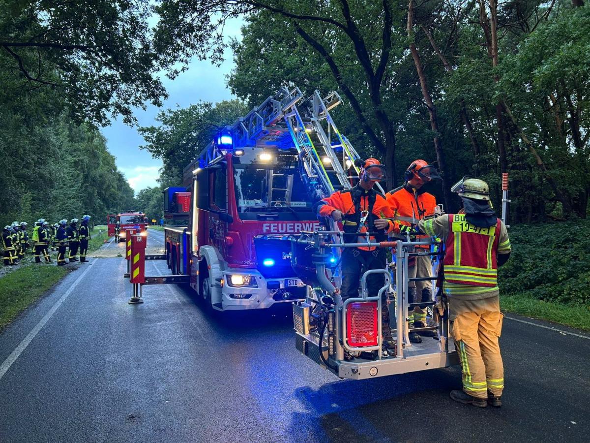 Zunächst war im Bereich zwischen Schragenberg und Fischerhof ein riesiger Baum quer über die B73 gefallen. Die Feuerwehrkräfte aus Nottensdorf und Horneburg waren dort bereits vor Ort, um die Fahrbahn schnellstmöglich zu räumen.